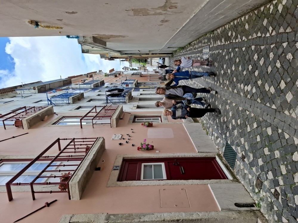Vstáváme kolem 8. Víťa pro nás připravil kvíz přes Kahoot. Pak se u dveří objevuje hodná paní domácí a nese nám dort a košík s pomeranči. Dámáme snídani před domem a vyrážíme do Soaja. Zastavujeme na parkovišti u místních slavných kamenných sýpek. Sýpky stojí na vyvýšené skále a s pozadím okolních hor jsou opravdu fotogenické. Je jich tu 24.