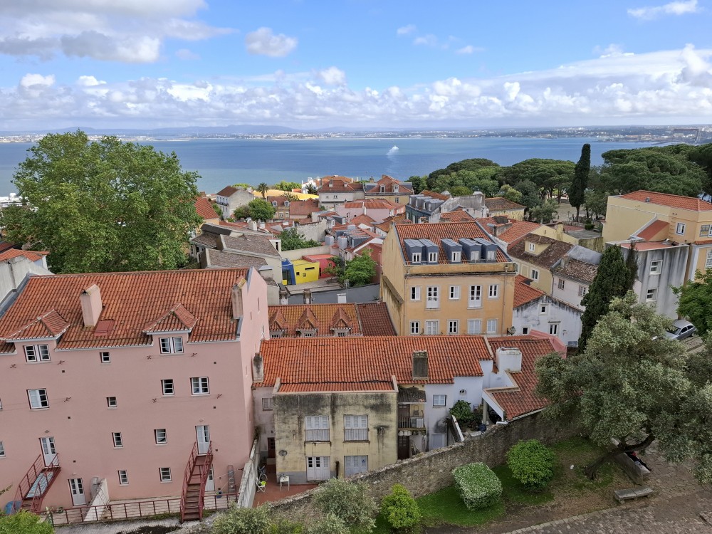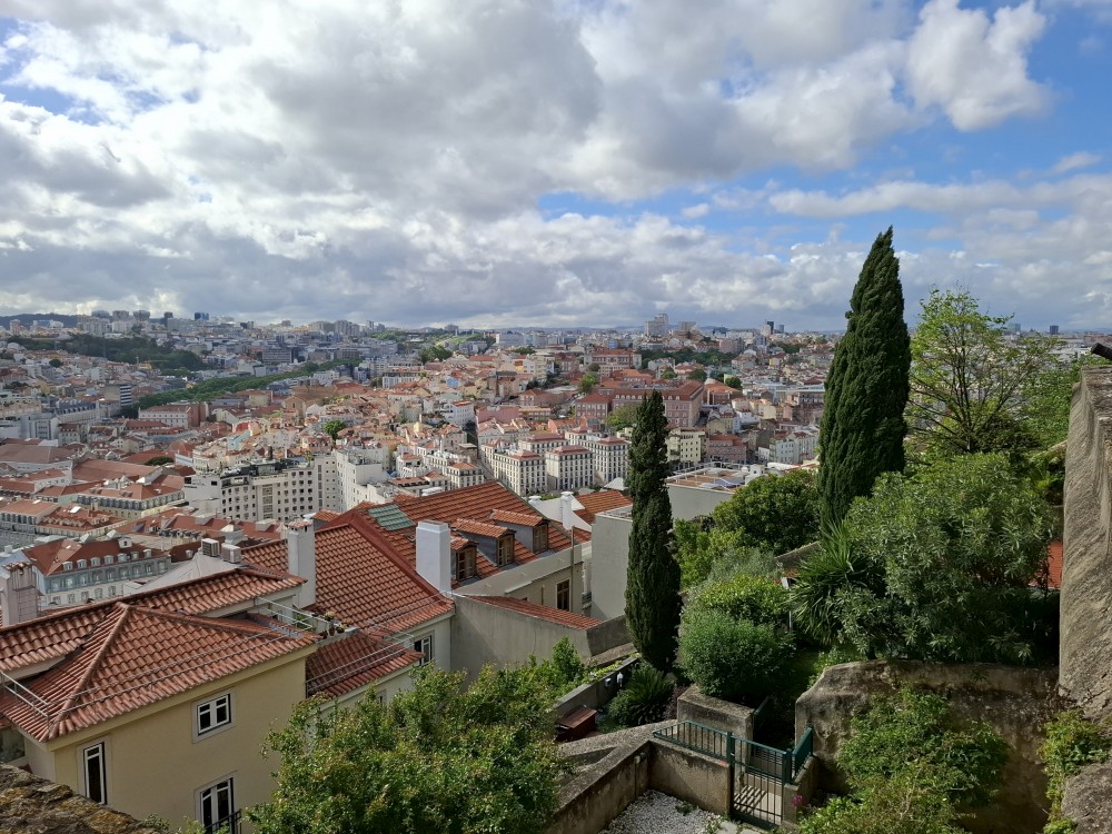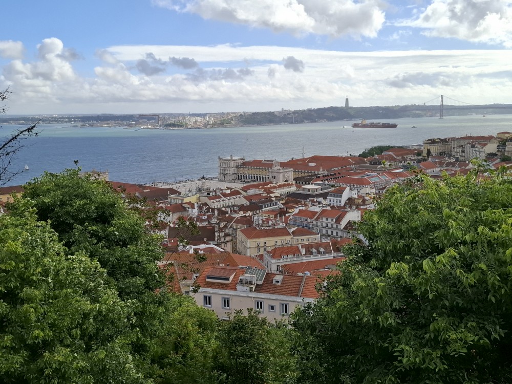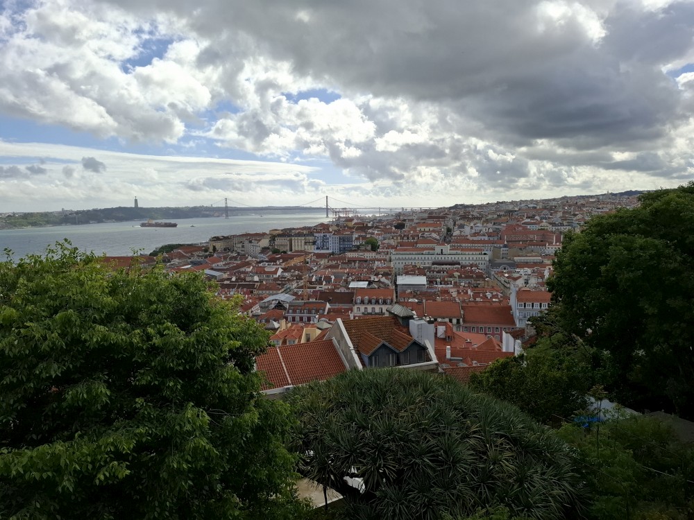 Parkování je hodně dobrodružné. Nejprve jedeme skoro sami po nábřeží, kde je spousta cedulí se zákazem vjezdu s portugalskými nápisy, kterým nerozumíme, takže vůbec nevíme, jestli tudy můžeme jet. Projíždíme kolem policistů, ti nás ignorují, tak snad OK. Pak zase jedeme úzkými uličkami centra Lisabonu k vytipovanému parkovacímu domu nedaleko lisabonského hradu a našeho ubytování.