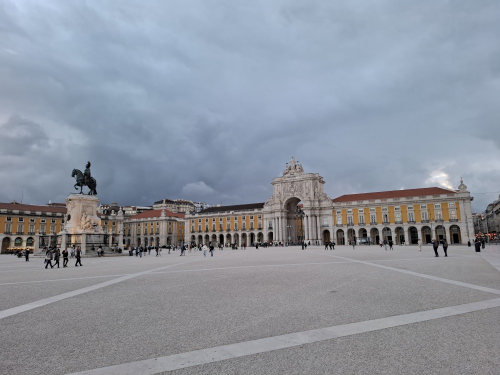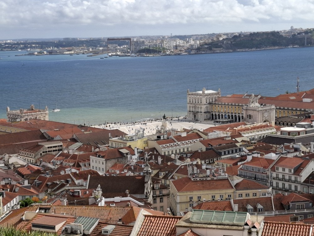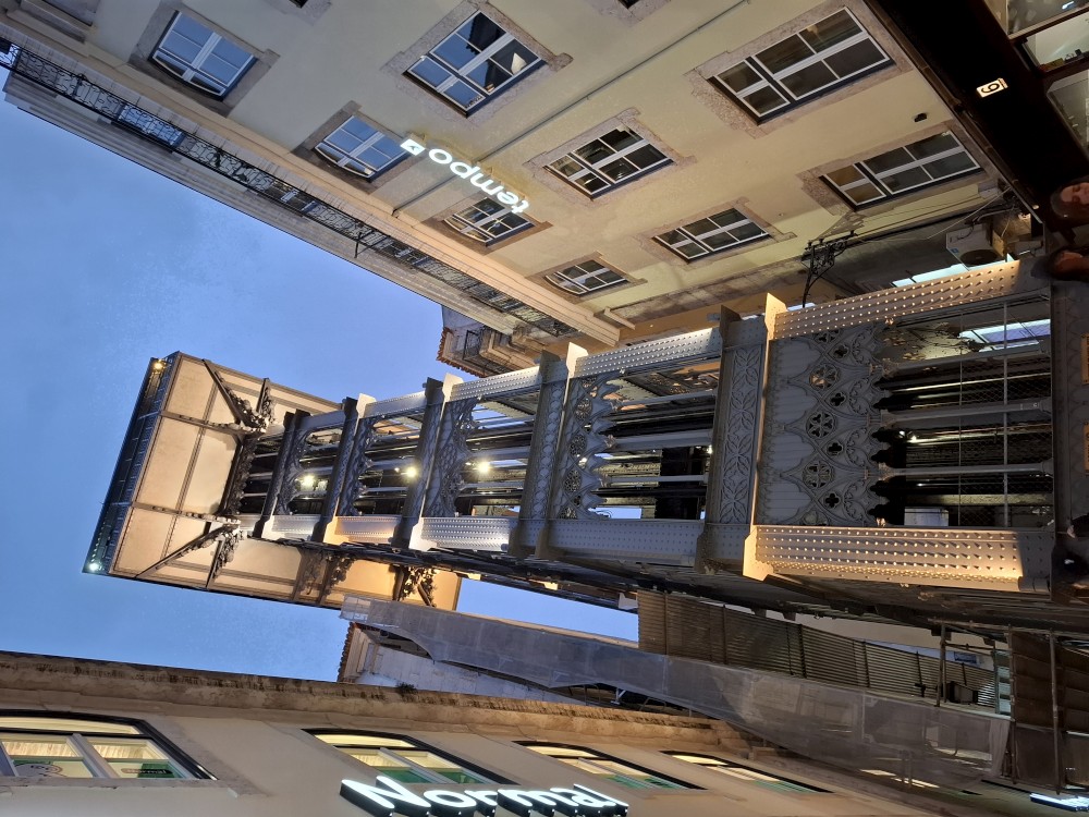 Jdeme čtvrtí Afama a pak dále na hlavní velké náměstí Praça do Comércio. Je zde socha José I. portugalského na koni a také vstupní brána do města, něco jako vítězný oblouk - Arco da Rua Augusta. Skrz bránu vstupujeme do čtvrti Baixa. Jdeme po nákupním bulváru. Kluci koukají na dresy, které zde prodávají černoši. Začíná ale dost pršet, černoši to balí. My se jdeme v dešti ještě podívat na místní výtah Elevador de Santa Justa. Je to historický výtah, který propojuje nižší čtvrť Baixa s vyšší čtvrtí Chiado.