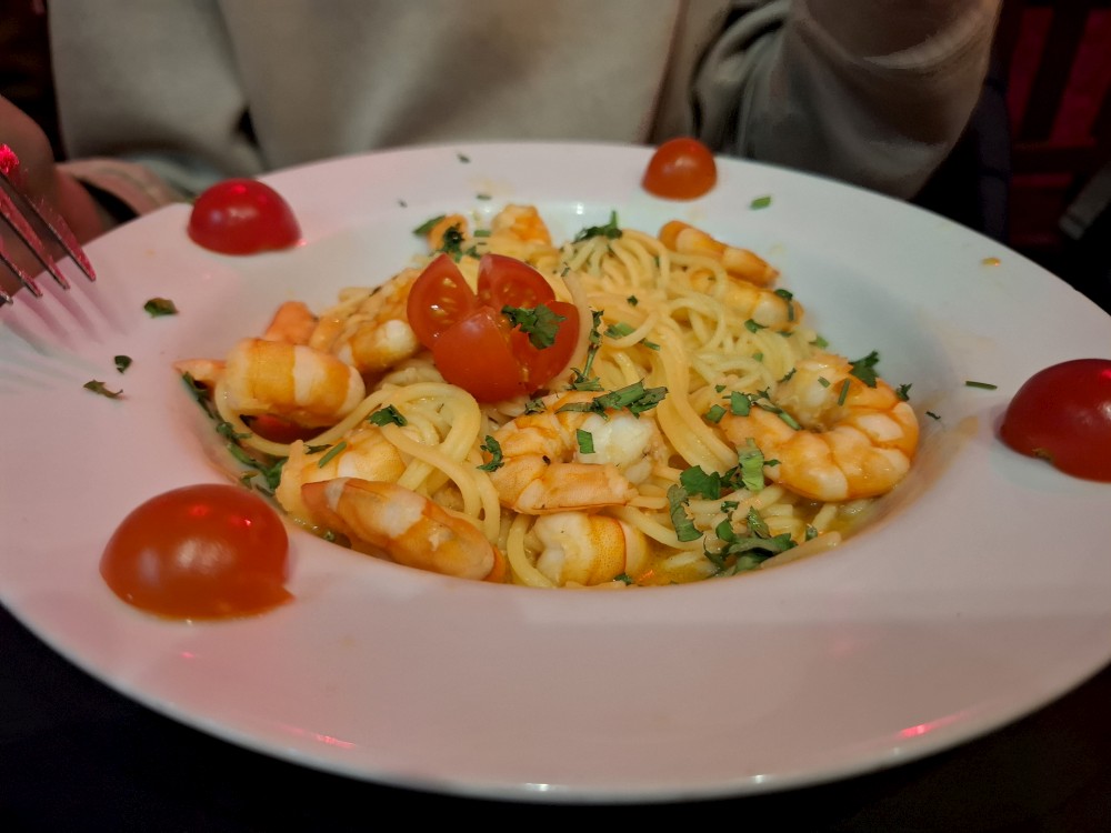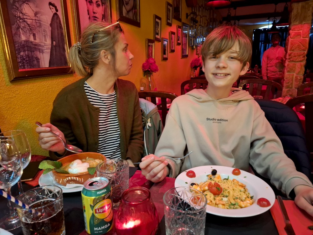 Jdeme hledat nějakou restauraci, děti už jsou hodně hladové. Procházíme městem křížem krážem, nic se nám úplně nelíbí. Bětuška už hodně nadává, tak s ní zastavuji v jedné pizzerii a objednávám jí pizzu. Ostatním se tu nelíbí a jdou hledat dál. Našli nějakou asijskou restauraci, ale mají zde i obyčejná jídla, jako tortily apod. Tak sedají ven ve stolu. S Bětuškou se za nimi za chvíli připojujeme.