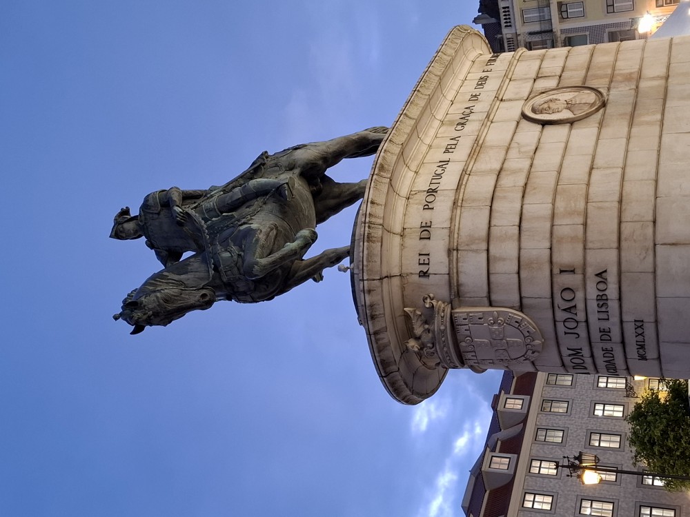 Výtahem nahoru nejedeme. Pokračujeme ještě přes náměstí Praça da Figueira s jezdeckou sochou. Pak už to stáčíme k hradu a ubytování a jdeme spát.