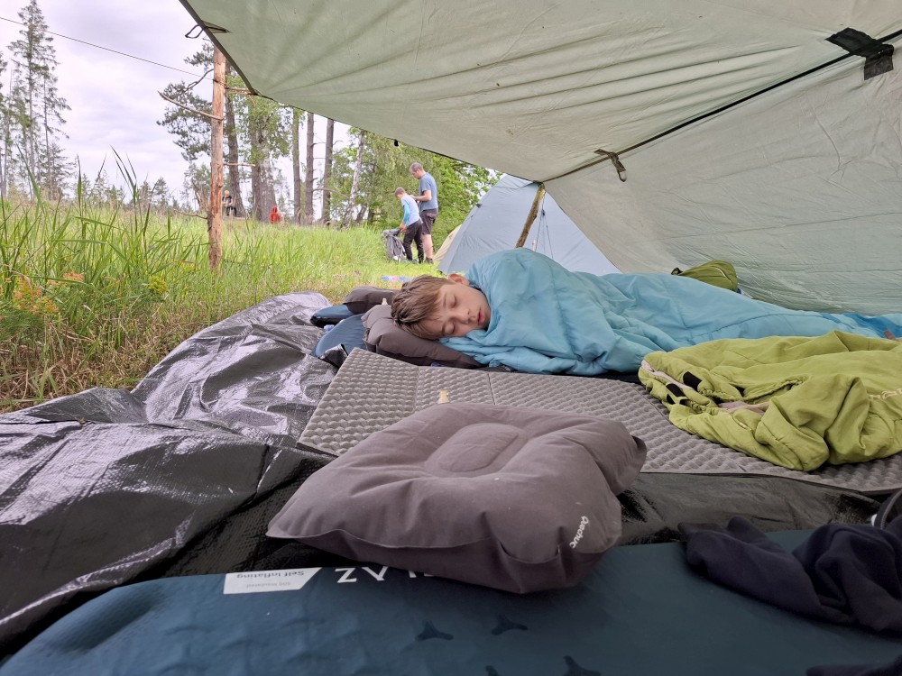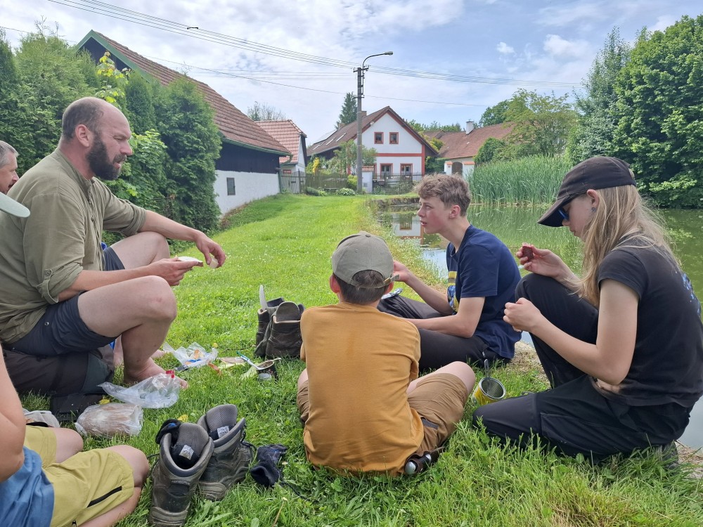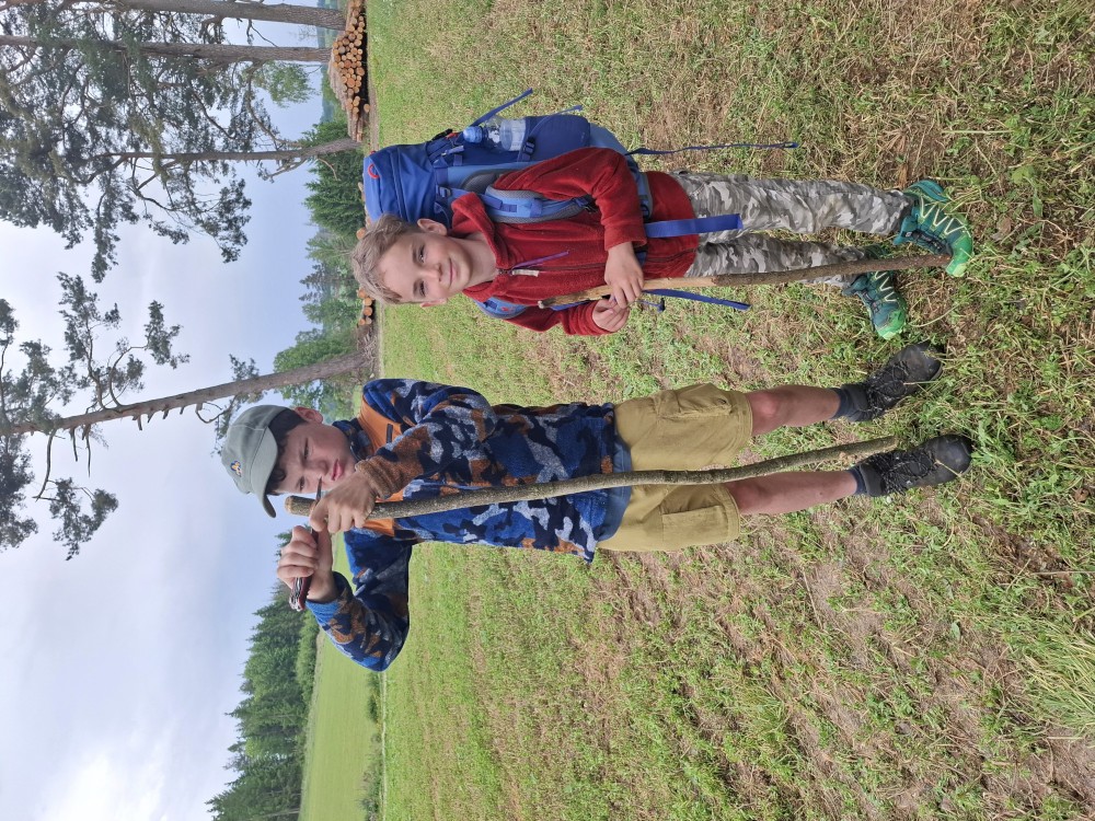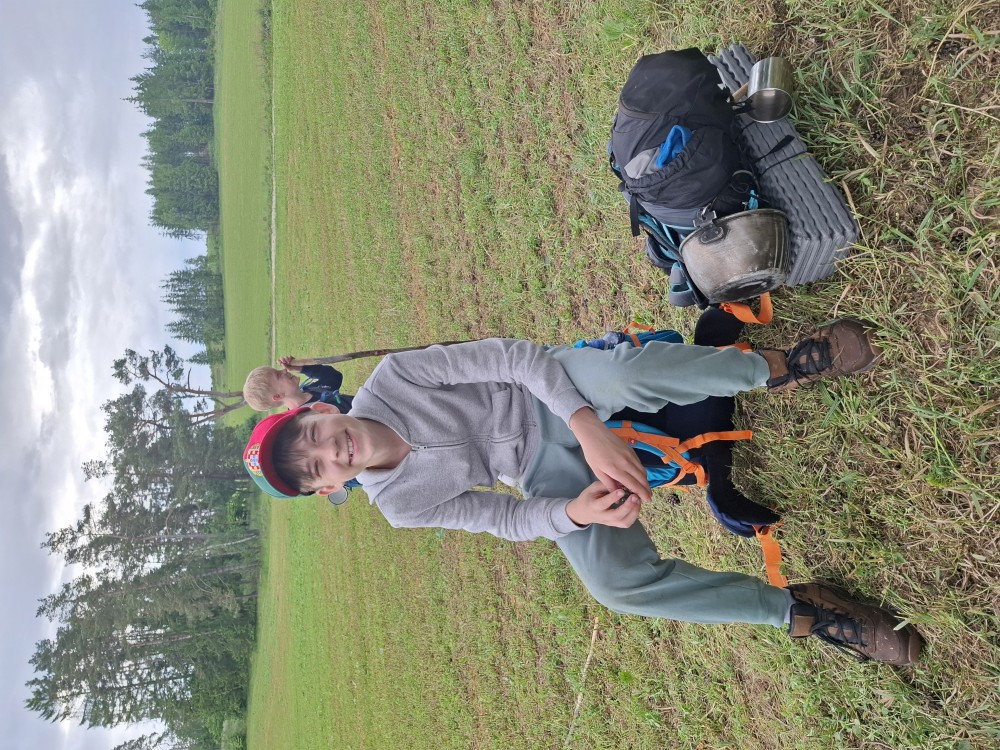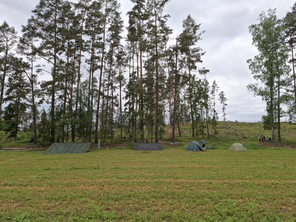 Jedeme letos zase na dětský čundr. Jirka s Pepínem vyráží už ve čtvrtek a motají se někde kolem Chýnova. V pátek večer se k nim připojuje nejdříve Radek s dětma a pozdě večer pak ještě Láďa s Radimem. My se bohužel připojíme až v sobotu. Já měl v pátek vyšetření v Proton centru, přijíždím v pátek pozdě. A když už jedeme v sobotu, vezu ještě Jiříka na zápas do Lišova. Hned po návratu nás Jana veze autem do Kojčic u Pelhřimova, kde čekáme na ostatní až se k nám připojí.