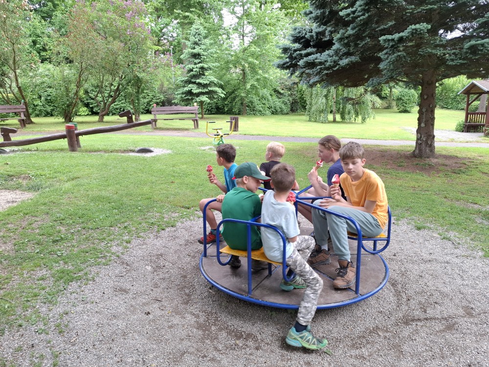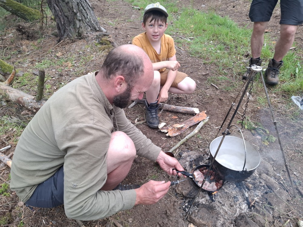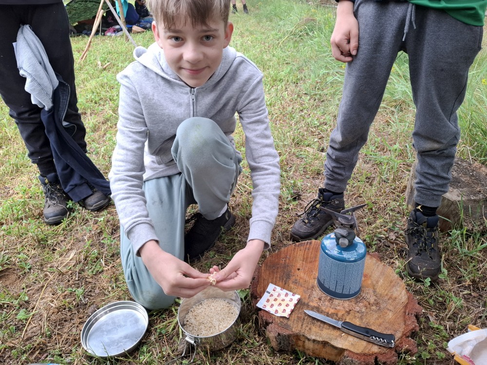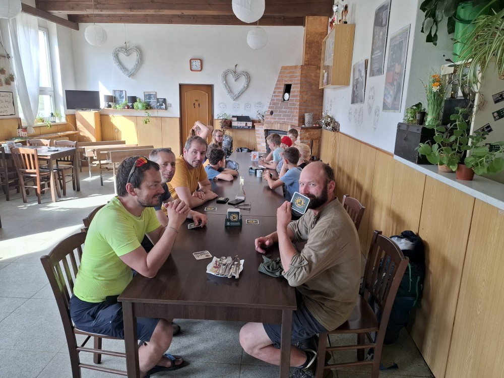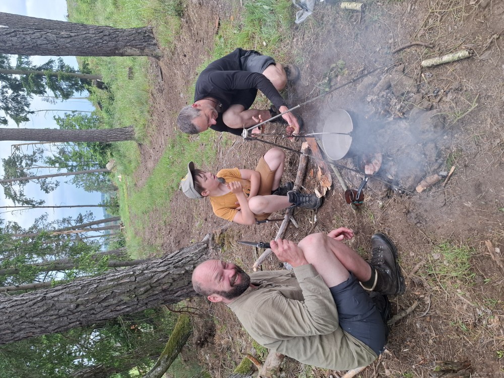 Jedeme letos zase na dětský čundr. Jirka s Pepínem vyráží už ve čtvrtek a motají se někde kolem Chýnova. V pátek večer se k nim připojuje nejdříve Radek s dětma a pozdě večer pak ještě Láďa s Radimem. My se bohužel připojíme až v sobotu. Já měl v pátek vyšetření v Proton centru, přijíždím v pátek pozdě. A když už jedeme v sobotu, vezu ještě Jiříka na zápas do Lišova. Hned po návratu nás Jana veze autem do Kojčic u Pelhřimova, kde čekáme na ostatní až se k nám připojí.