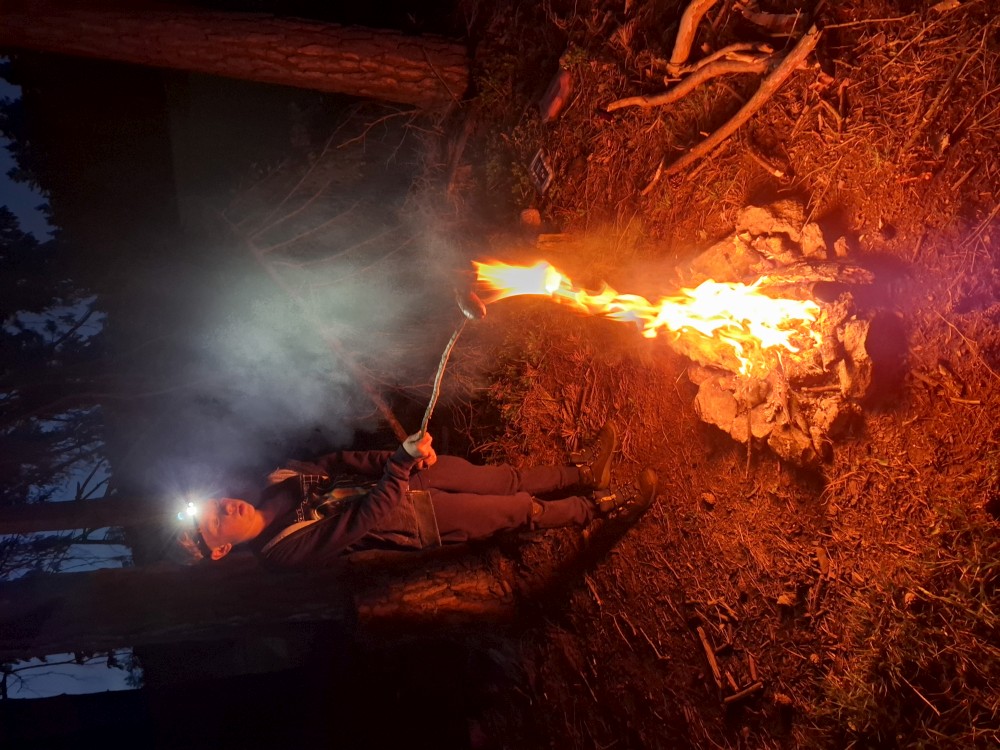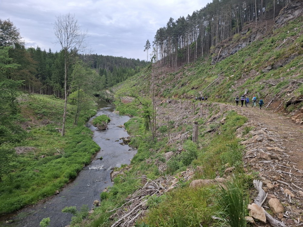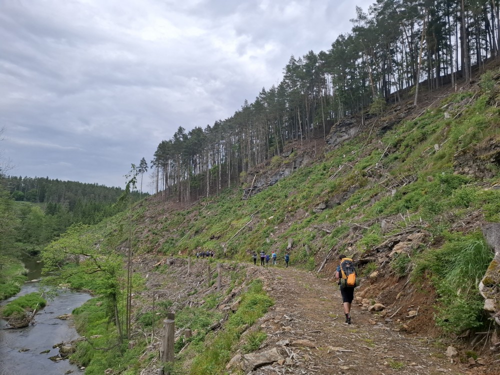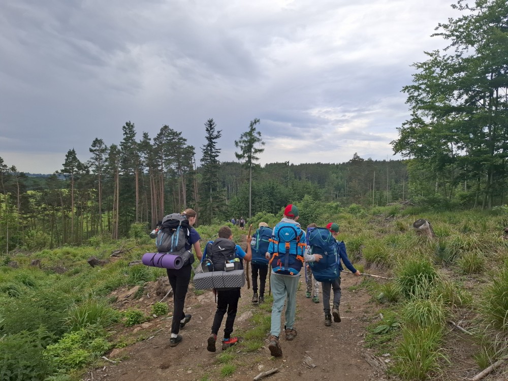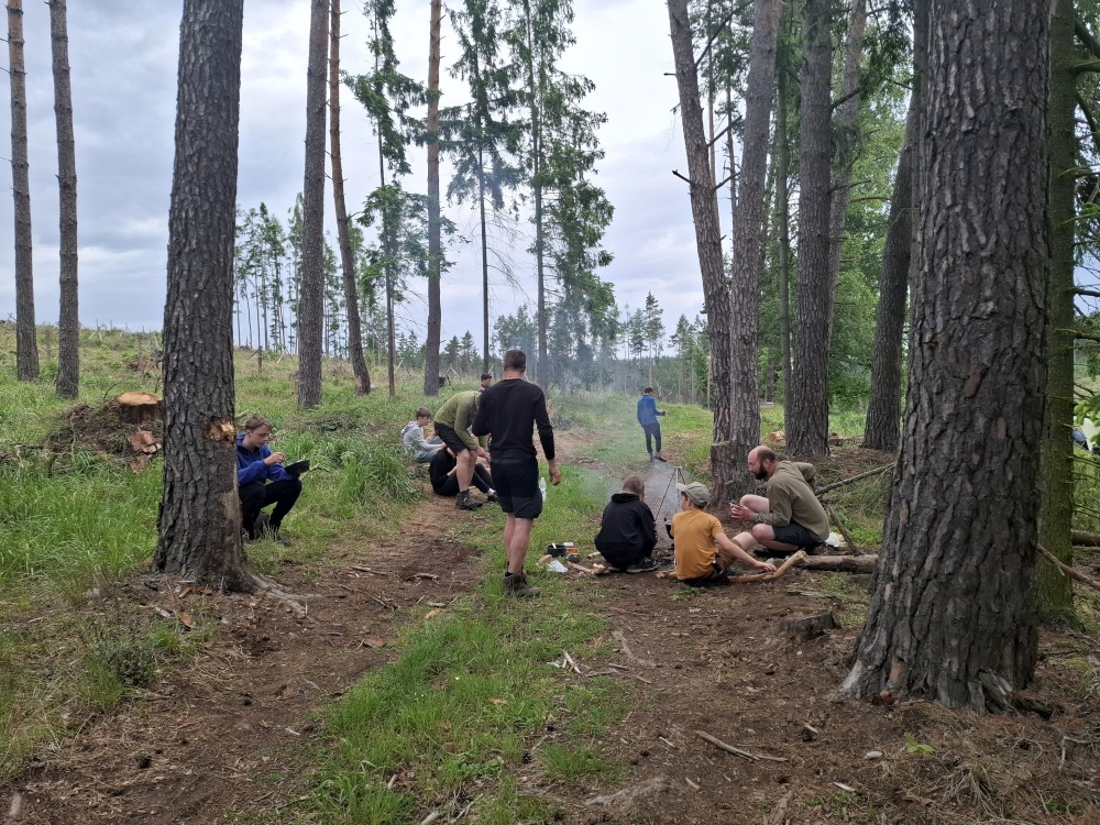 Hrajeme na hřišti fotbal a házenou. Pak už doráží ostatní. Pro nás čundr začíná v místní hospůdce, která pro nás otevřela, dáváme pivo i jídlo. Pak už nandaváme batohy a jdeme po červené k řece Želivce. U studánky U Šlejferků shazujeme batohy a jdeme hledat místo na spaním. Našli jsme hezkou louku na kraji lesa, kam není vidět, poblíž kóty 510.
