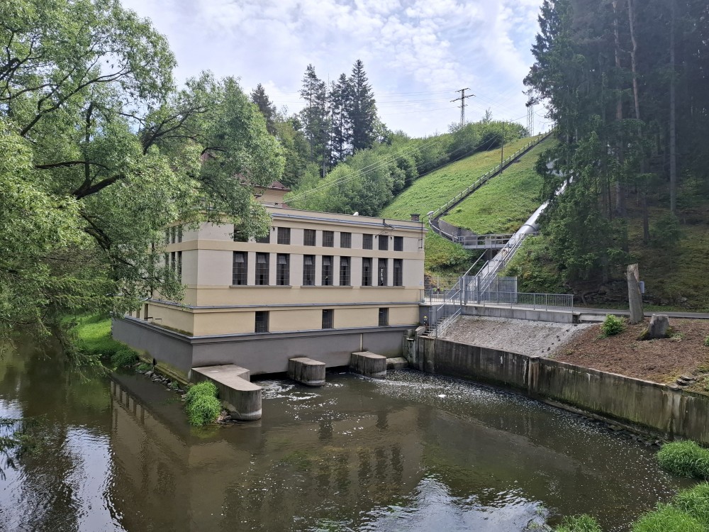 Tam si dáváme u rybníčku sváču. Pokračujeme po červené k sedlické hydroelektrárně. Naproti ní je občerstvení, tak si dáváme pivo a nanuky. Pak už musíme pokračovat po červené do Želivy, kde musíme stihnout autobus do Tábora. Čas máme dobrý. V parku na kraji Želivy dáváme zmrzlinu. Pak se od nás odděluje Láďa. Jede s Radimem stopem k jejich autu.