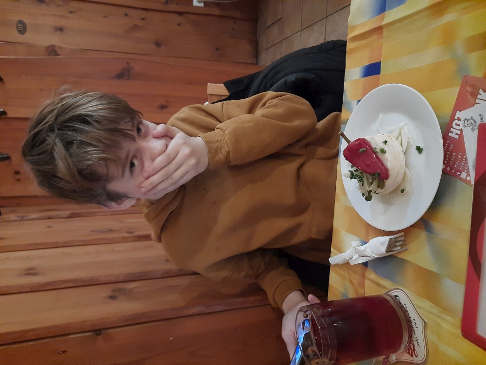 Dnes dostali kluci vysvědčení. Já ukončuji práci kolem poledne a jedu s Víťou vlakem do Bechyně. Tam si dáváme oběd v jídelně kousel od náměstí. Víťa si představoval nějakou vyvoněnější restauraci, ale mě to přišlo dobré, rychlé a za dobrou cenu.