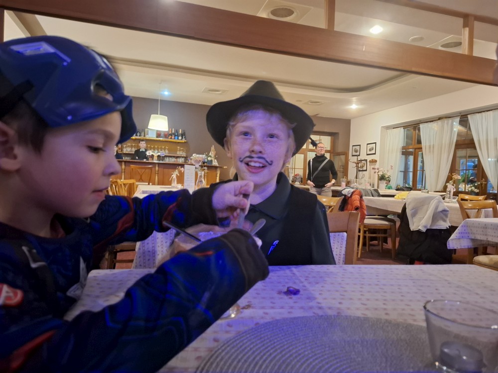 Jdeme na Karneval do Čelkovic. Jdou s náma Millnerovi a Pavla s Honzou a Johankou.
