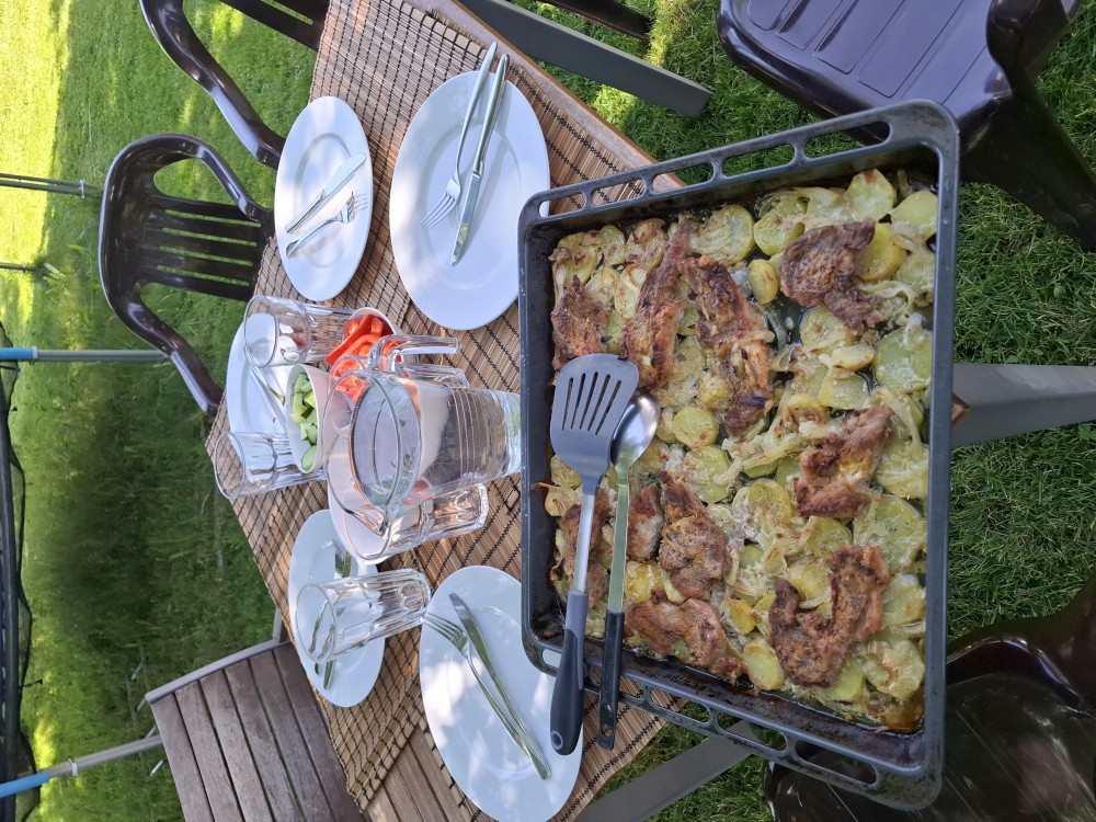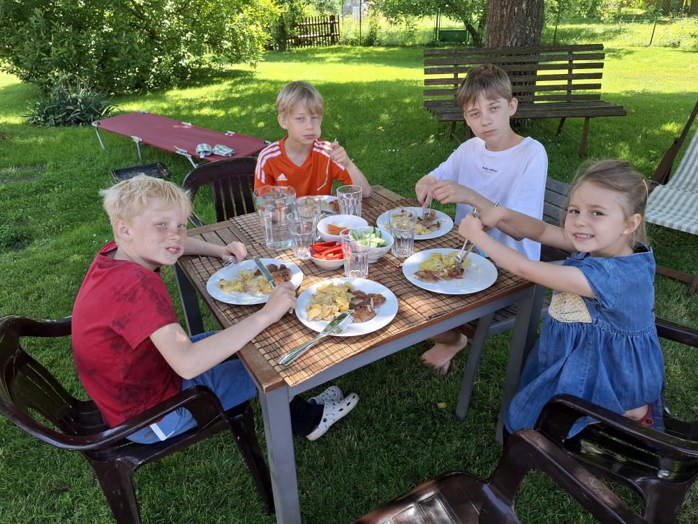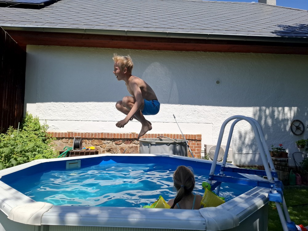 Dnes jde Jana na výlet s Orbiskou. Je to výlet na rozlučku s Romanem Proutkovským. Venku je hrozné horko. Ztrávíme den u bazéno. Vařím oběd - maso zapečené s bramborama. Večer máme letní kino. Promítáme Jumanji 1. Přišel k nám Ondra Dvořák. Kouká s námi i Mareček s Nelinkou.