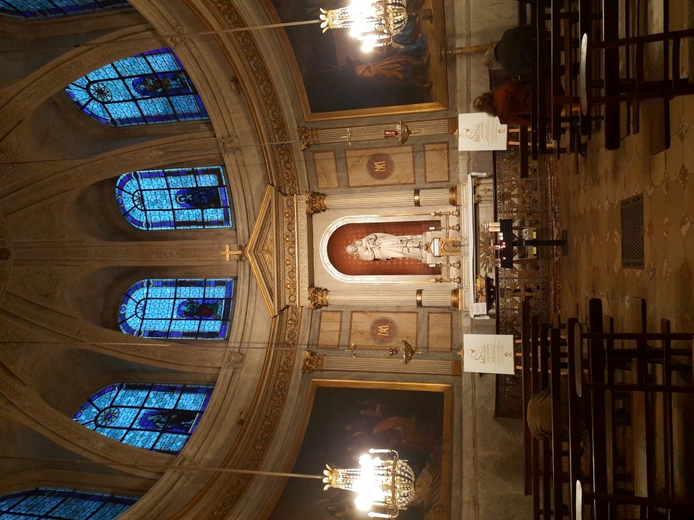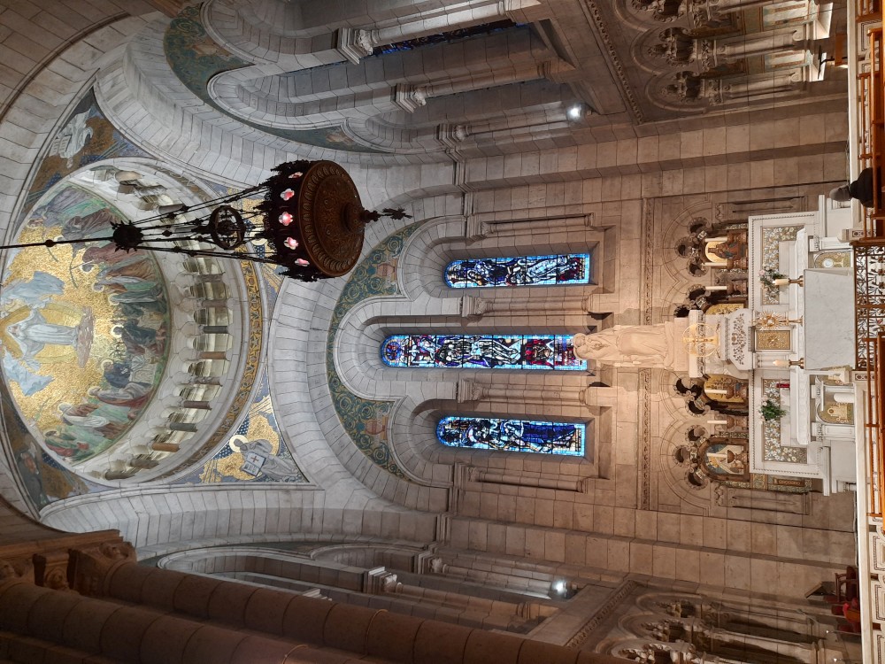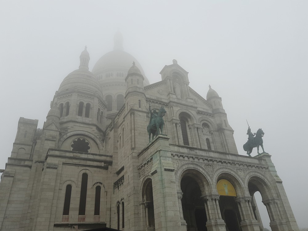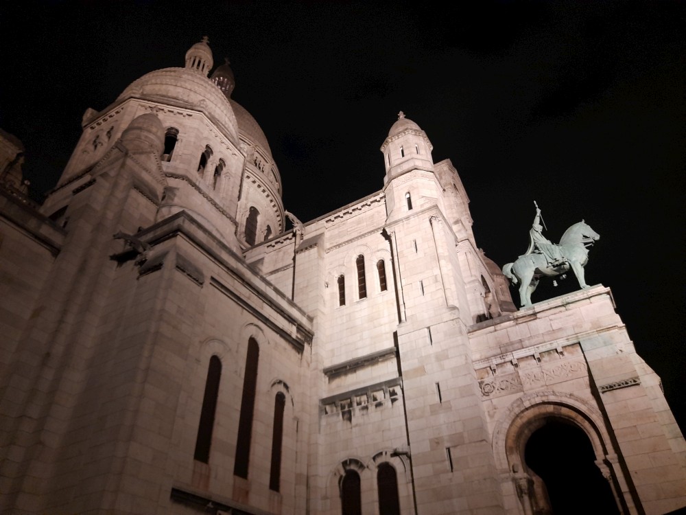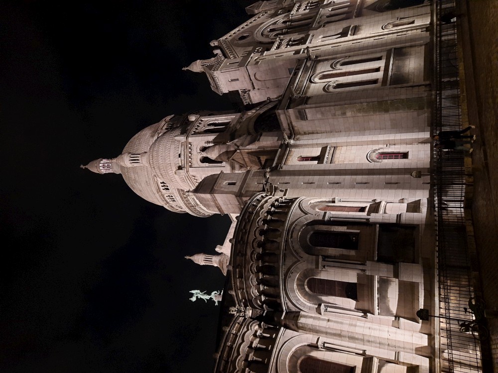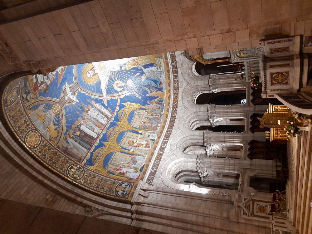 Chvlíli se rozhlížíme a pak už jdeme do baziliky Sacré-Cœur. Bazilika se tyčí na vrcholu kopce Montmartre a patří k nejvýraznějším dominantám Paříže. Byla postavena na přelomu 19. a 20. století jako symbol víry a národní jednoty. Je postavena z bílého travertinu. Interiér zdobí obří mozaika Krista.