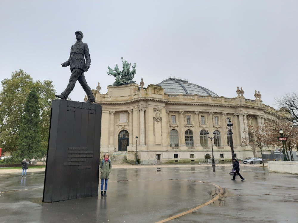 Dáváme si snídani na našem ubytování a vyrážíme do města. Jedeme metrem na stanici Champs-Élysées - Clemenceau. Vystupujeme u sochy generála De Gaulla přímo před Grande Palais. Grand Palais je monumentální výstavní palác, postavený pro světovou výstavu v roce 1900. Proslul svou obrovskou skleněnou klenbou a slouží jako místo konání uměleckých výstav, módních přehlídek i sportovních akcí.