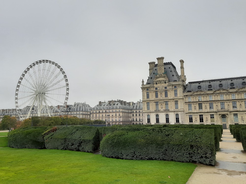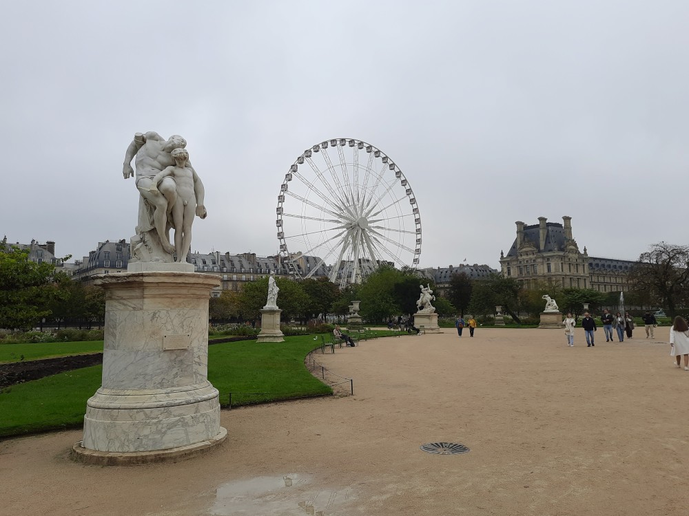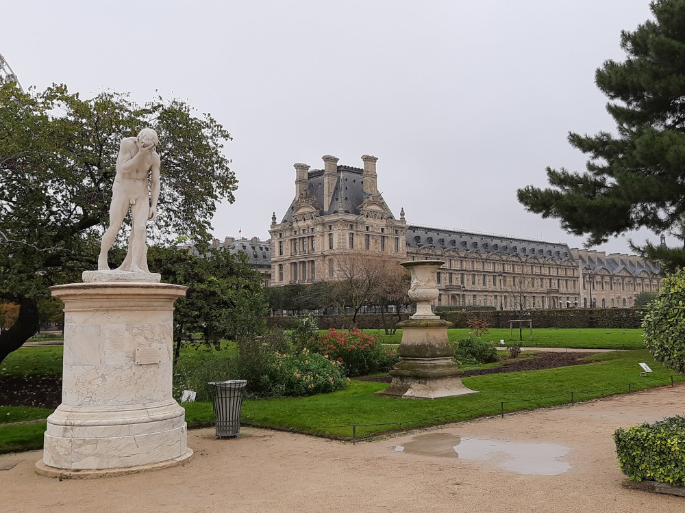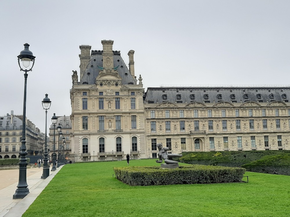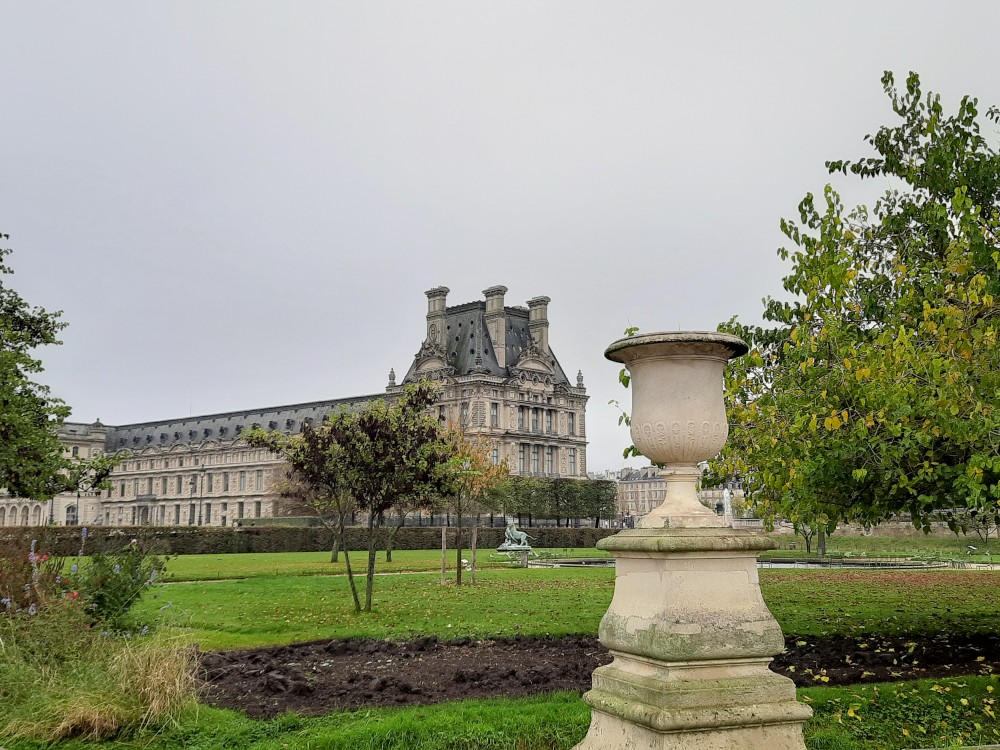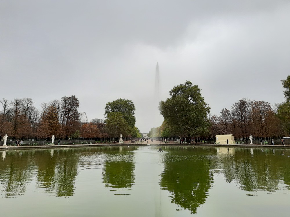 Kolem obrovské kašny Octagonal basin, kde se shromažďují běžci ke společnému běhu jdeme po Alée centrale Tuilerijskou zahradou k Louvru. Ještě před Louverem je Arc de Triomphe du Carrousel.