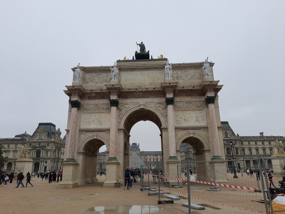 Je to menší vítězný oblouk stojící mezi Louvre a Tuilerijskou zahradou. Nechal ho postavit Napoleon na počest svých vojenských vítězství a inspiroval se římskými triumfálními oblouky. Je zdoben reliéfy s výjevy z jeho tažení a korunuje ho socha čtyřspřeží. Se slavnějším Arc de Triomphe na Champs-Élysées tvoří součást historické „pařížské osy“.