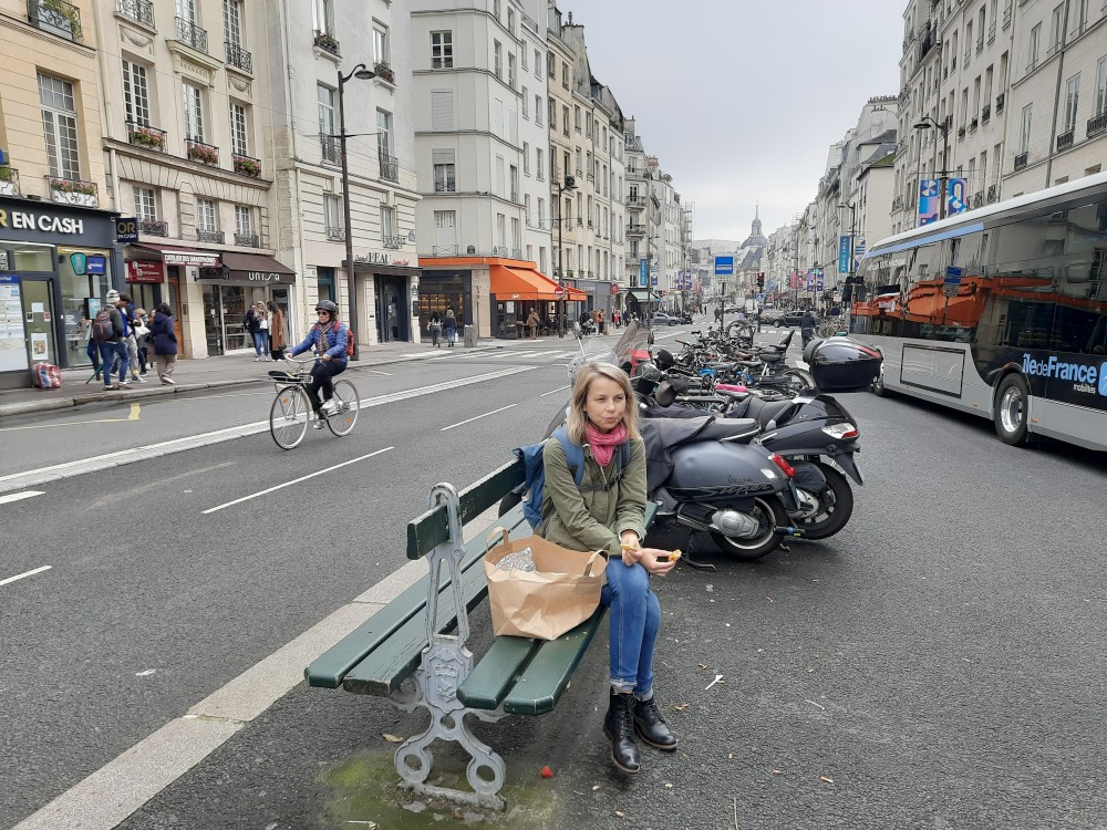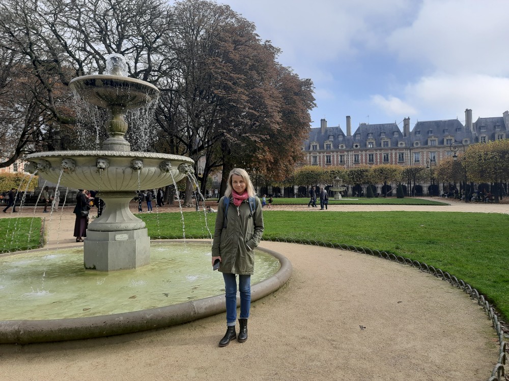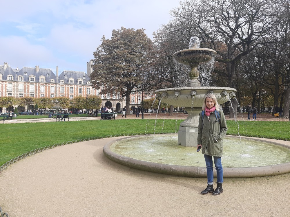 Přes něj se dostáváme na ostrov Ille de Saint-Louis. Přes další most Pont Louis-Philippe se dostáváme na praví přeh Seiny do 4.departmentu. Procházíme uličkami ke kostelu svatého Pavla a Ludvíka, kde jíme malý oběd, který jsme si koupily u stánku v jednom z parků, kterým jsme procházeli. Pak už procházíme na náměstí Place de Vosges.