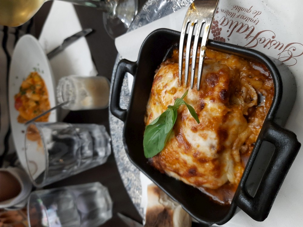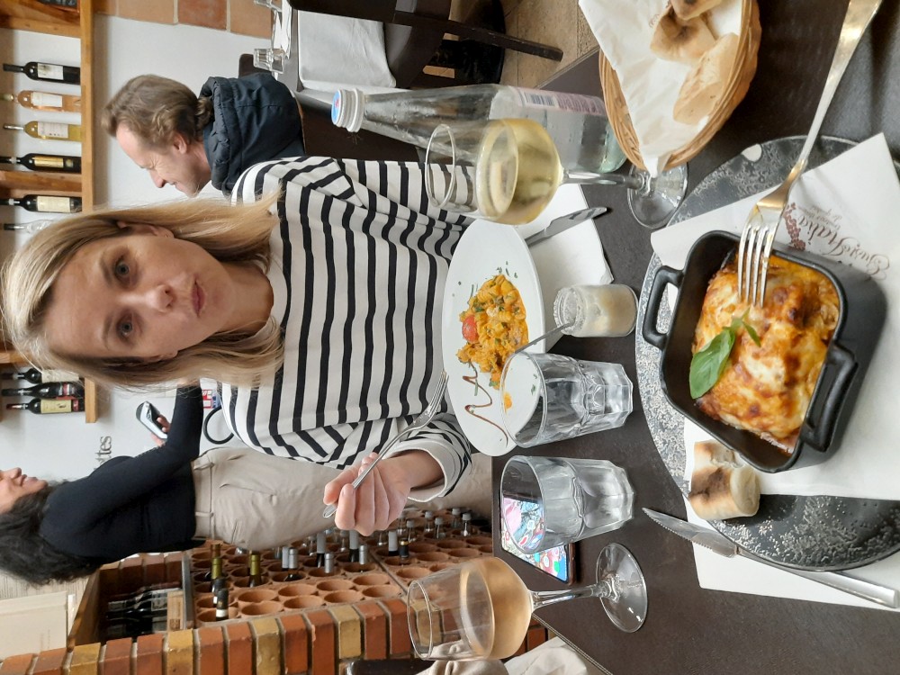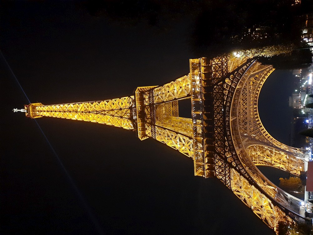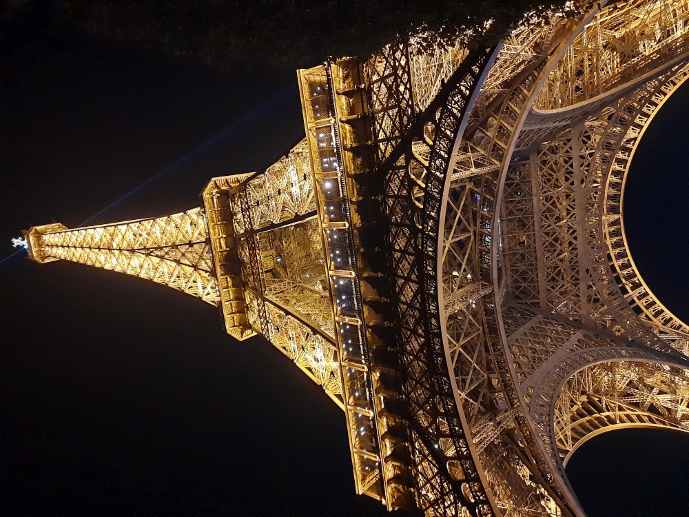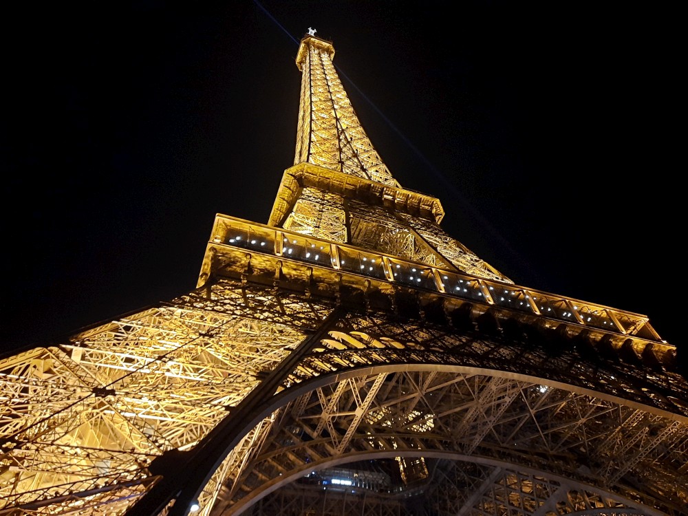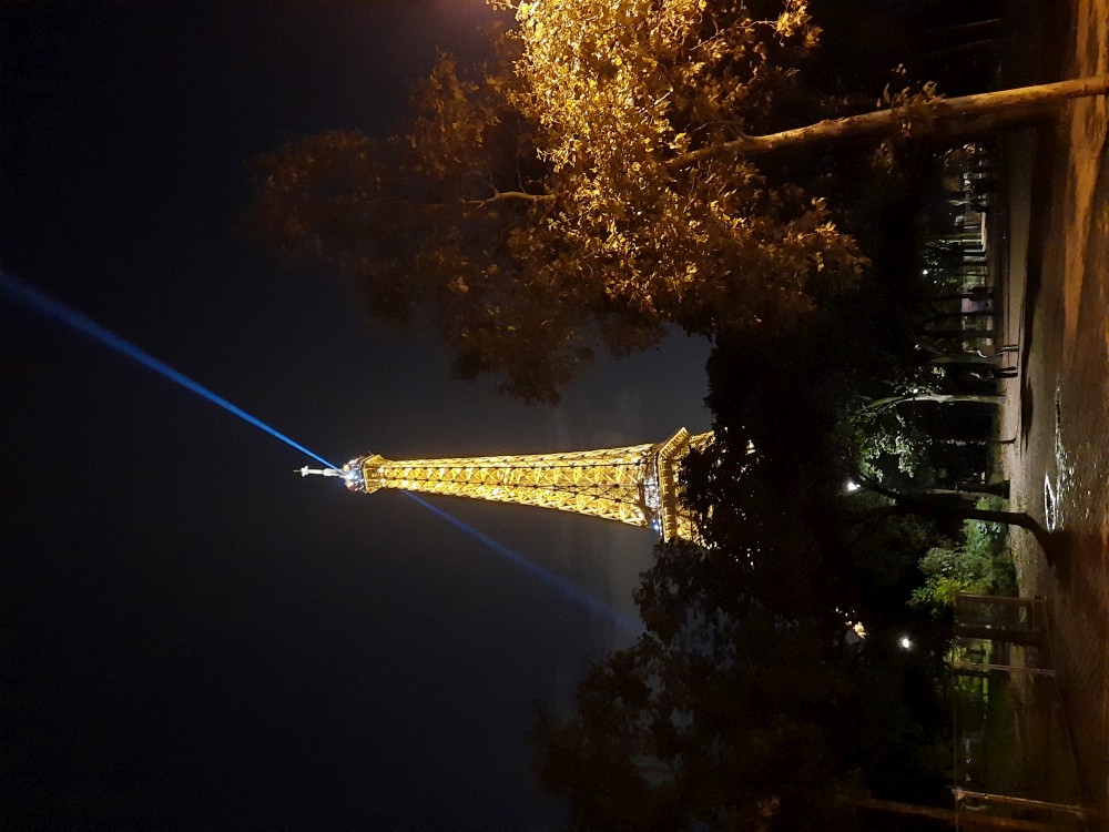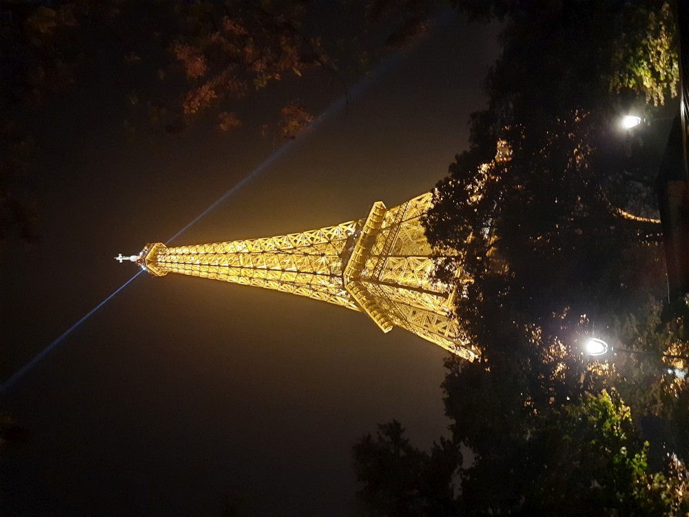 Ještě před návštěvou věže se chceme najíst. Zastavujeme v restauraci Gusto Italia nedaleko věže. Po večeři už je venku tma. Jdeme parkem k Eiffelovce. Kupujeme od černocha blikající Eiffelovku a dakší malé přívěsky s věží pro děti.