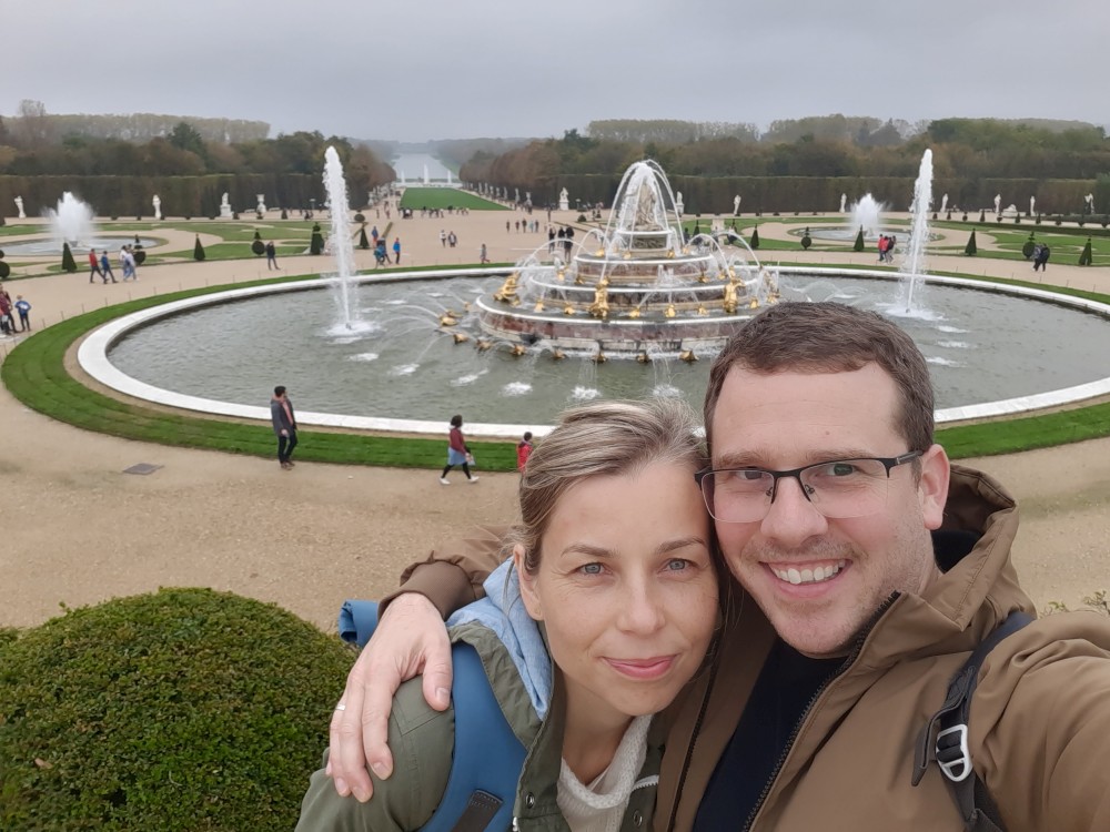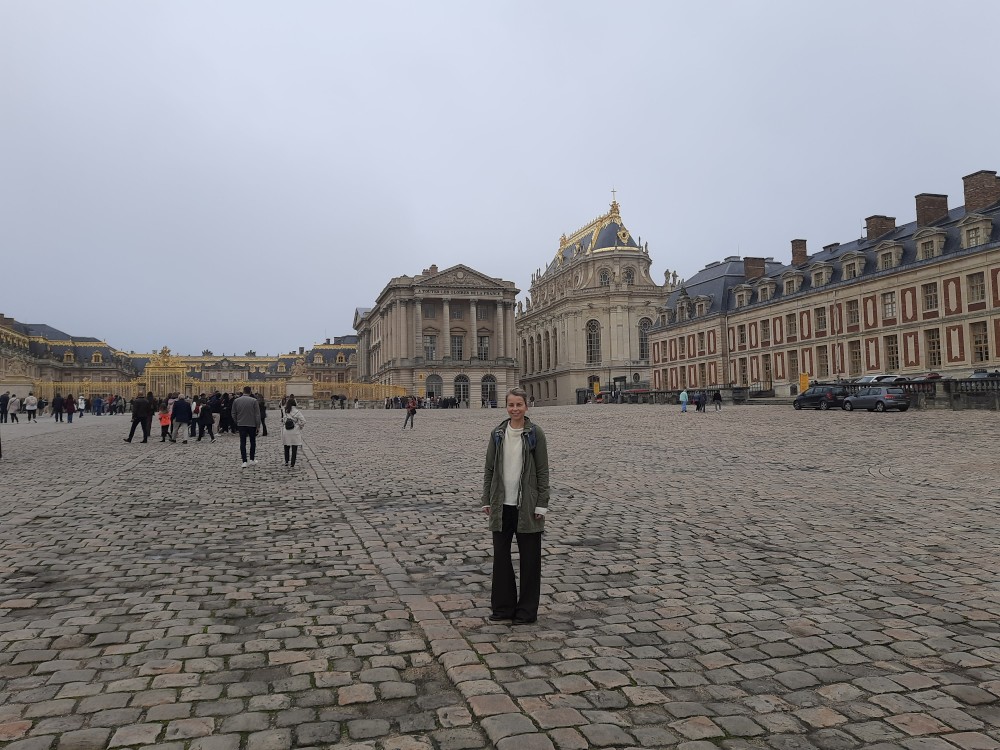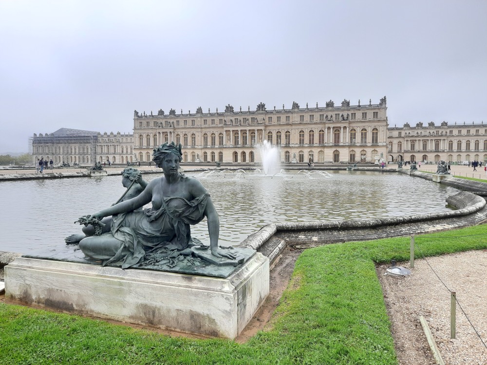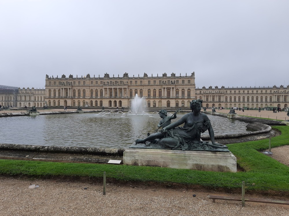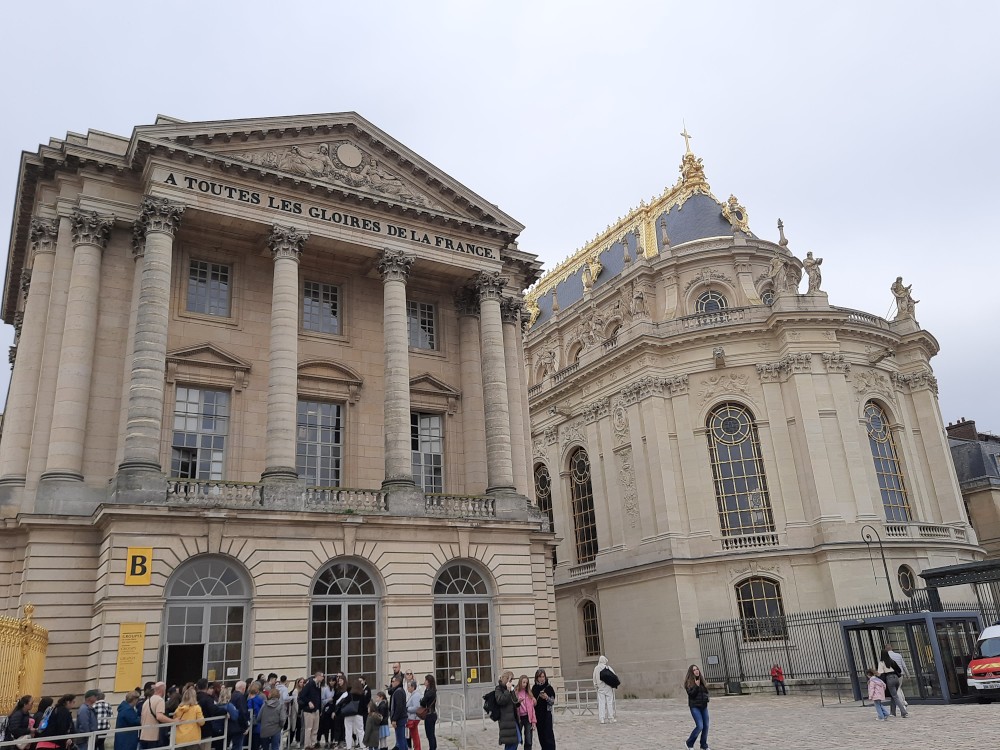 Ráno po snídani sedáme na metro, jedeme na Invalidovnu a tam přesedáme na vlak a jedeme do Versailles. Přijíždíme na nádraží Versailles Château Rive Gauche. Odtud jdeme k zámku pěšky. Před zámkem je obří náměstí Place d'Armes. Je zde velká spousta autobusů s turisty.