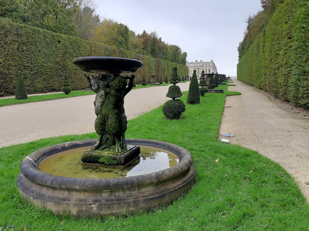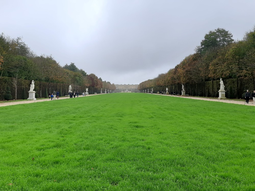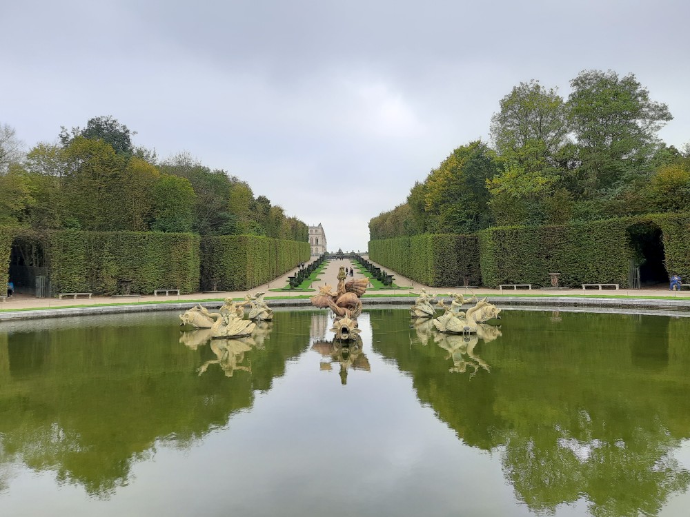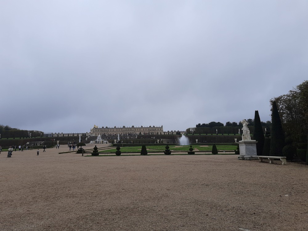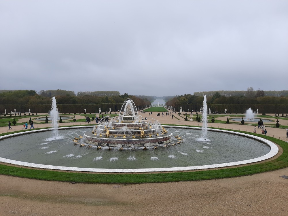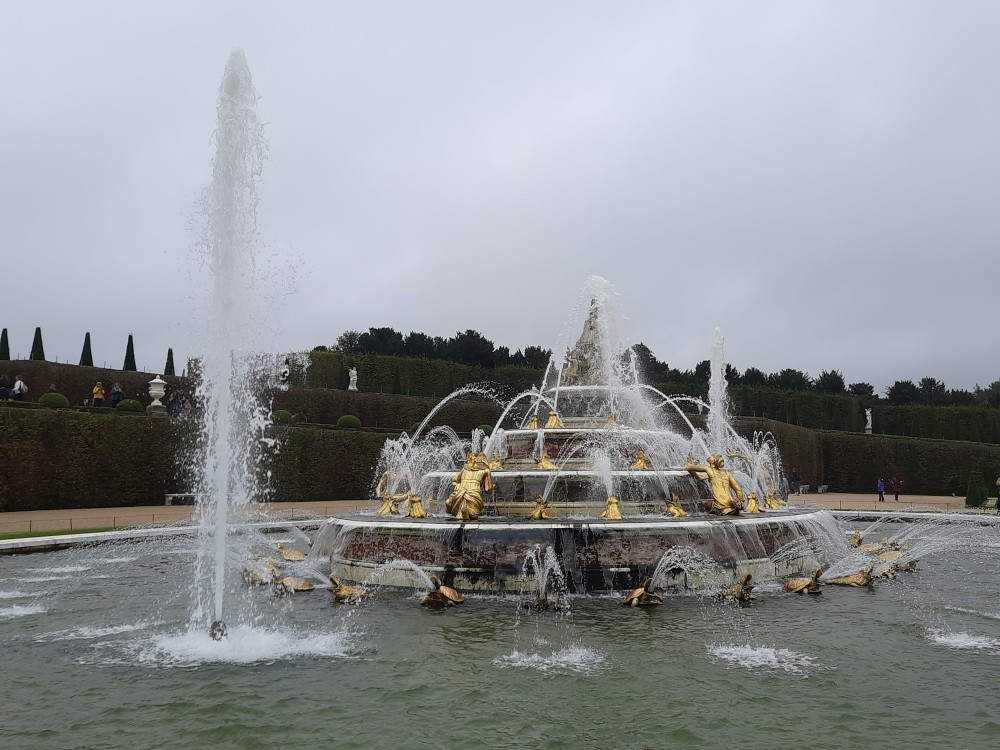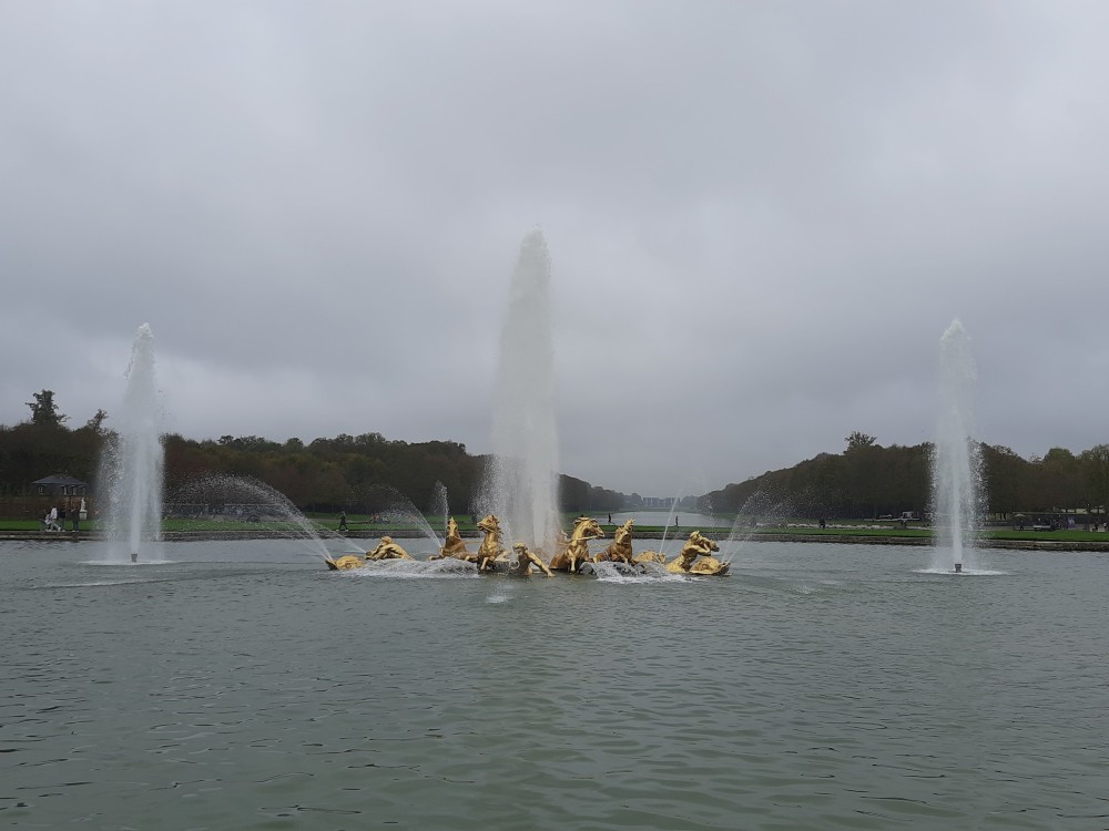 Jdeme tedy alespoň do zahrad. Jsou pečlivě upravené do pravidelných tvarů, s množstvím alejí, fontán, soch a vodních ploch. Rozkládají se na obrovské ploše a sloužily jako místo pro procházky a slavnosti francouzského dvora. Postupně procházíme celé zahrady. Jdeme k Apolńově kašně (Apollon sur son char), která stojí u Grand canalu.