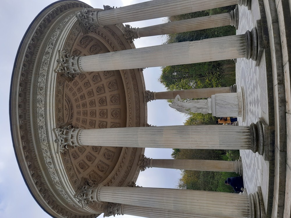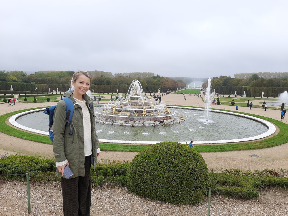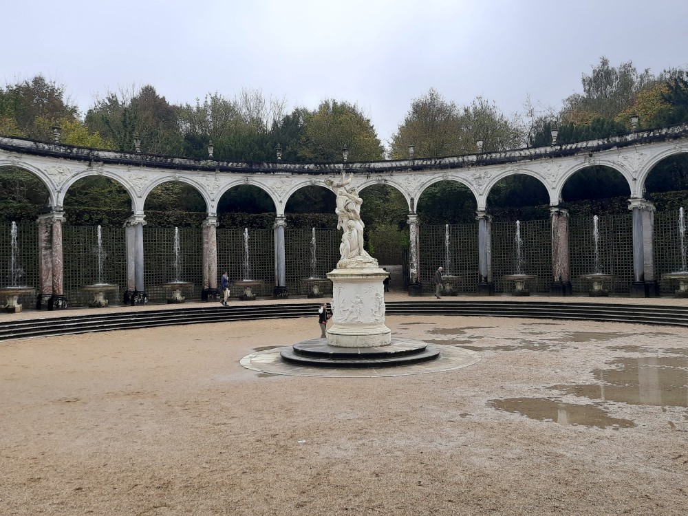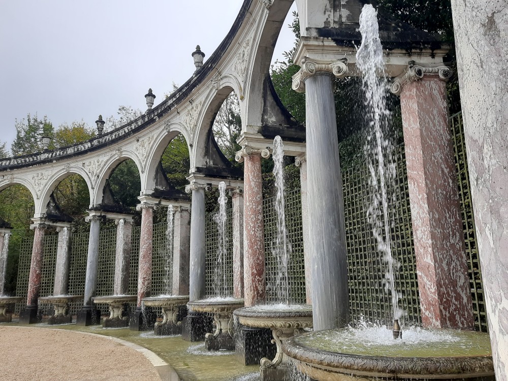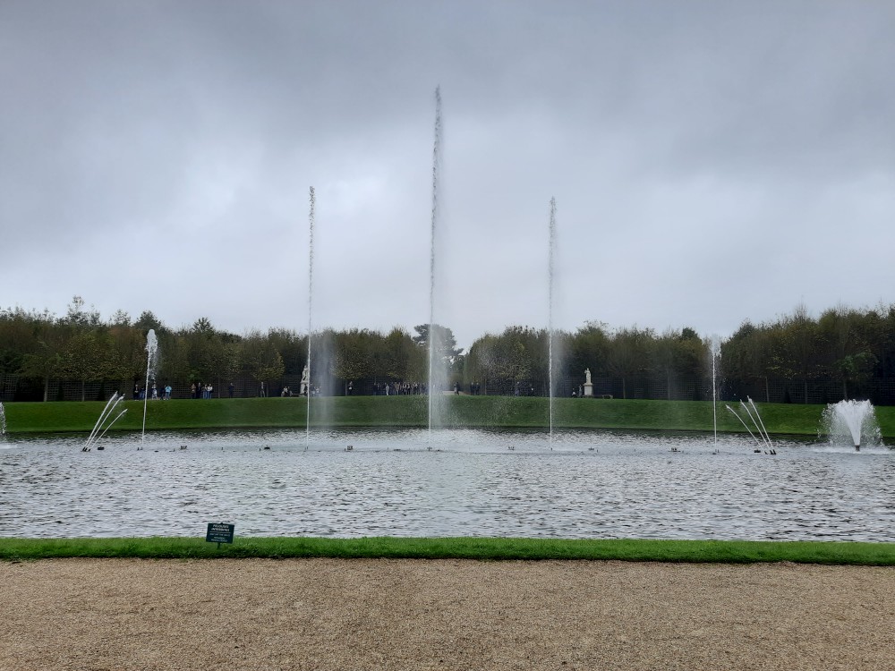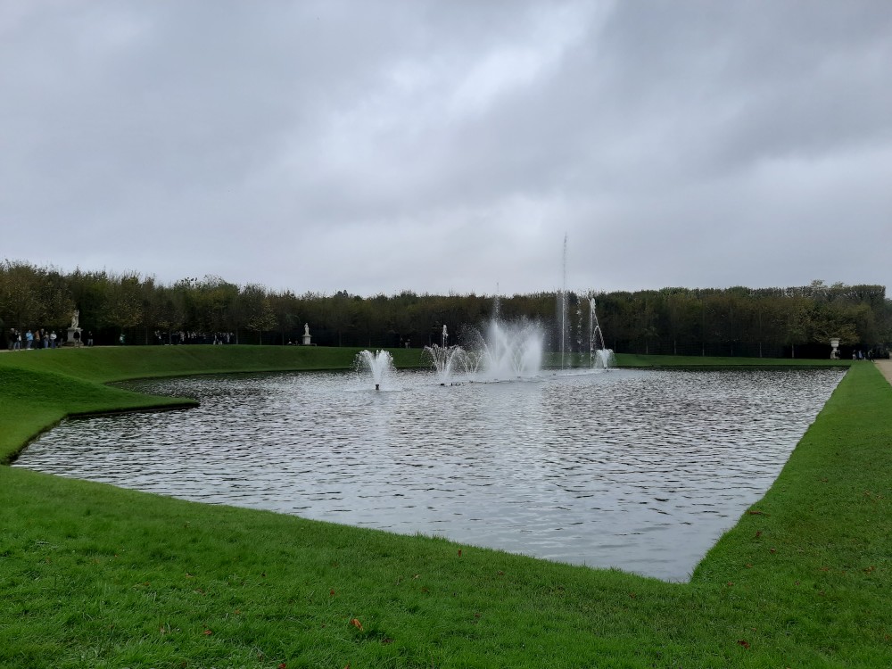 Sledujeme vodní představení s hudbou ve fontáně Bassin du Miroir. Přes zahrady jdeme k Le Petit Trianon, což je menší zámeček v areálu versailleského parku, postavený v 18. století pro krále Ludvíka XV.
