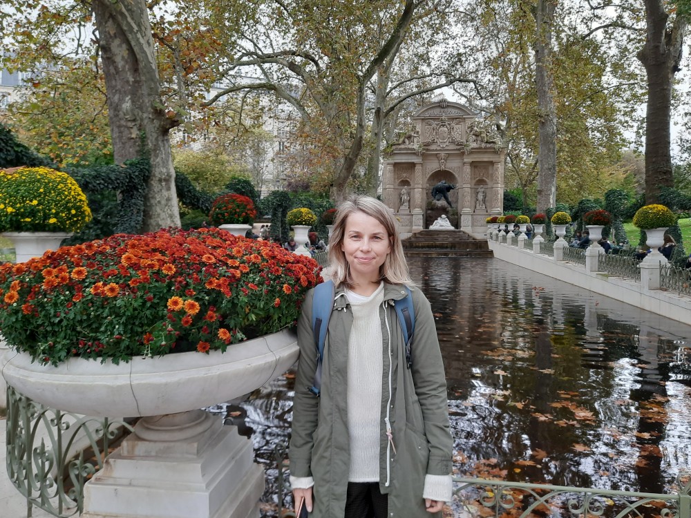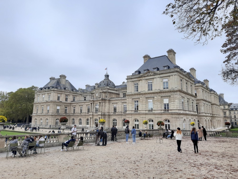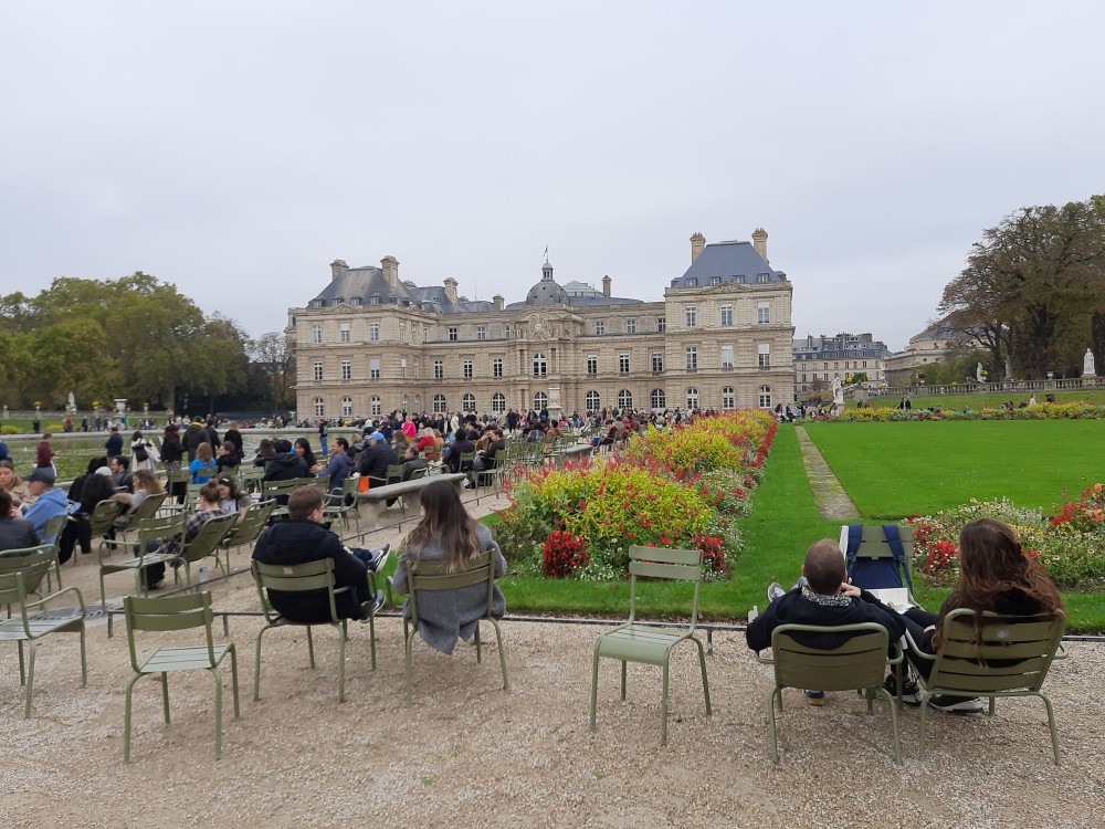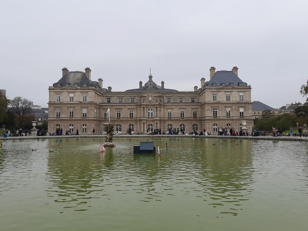 Z metra vystupujeme nedaleko divadlo Odeon a jdeme si prohlédnou Lucemburské zahrady (Jardin du Luxembourg), které obklopují Lucemburský palác, dnes sídlo Senátu. Zahrady kombinují francouzský formální styl s volnějším anglickým, nabízejí fontány, sochy, stromy, květinové záhony i dětské hřiště. Uprostřed je velké vodní jezírko, kde si děti pouštějí lodičky.