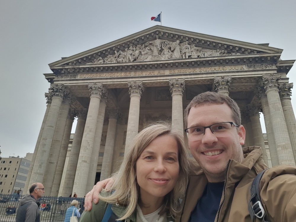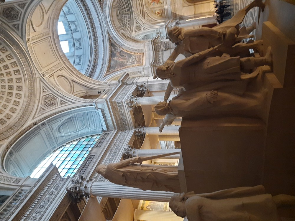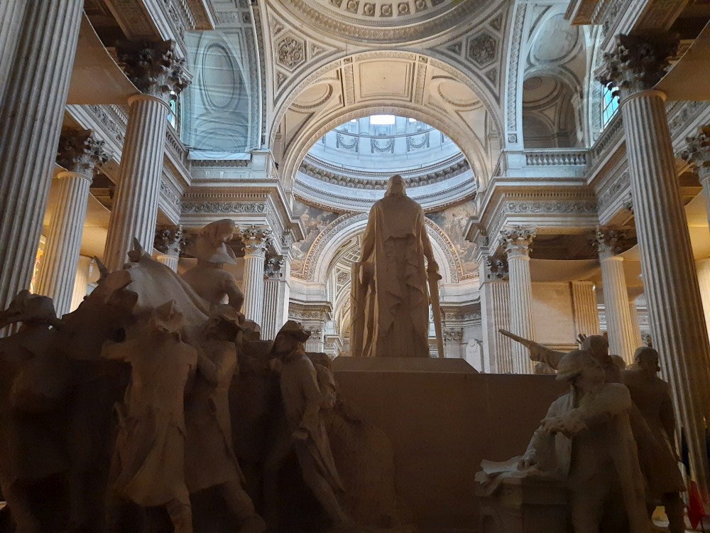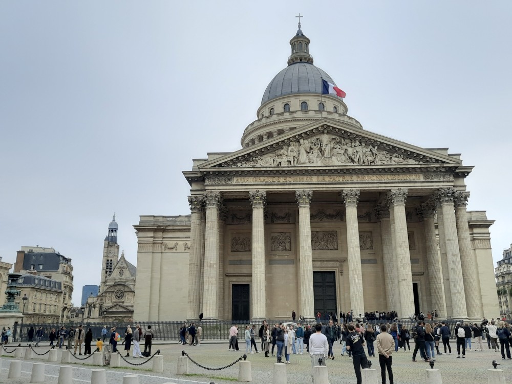 My si dáváme u jednoho z místních stánků kávu a zmrzlinu. Opouštíme zahrady a jdeme se podívat na Pantheon. Je monumentální stavba na Latinské čtvrti v klasicistním stylu. Slouží jako památník významných osobností francouzské historie. V jeho kryptě odpočívají Voltaire, Rousseau, Victor Hugo, Marie Curie a další. Vystojíme frontu na lístky a jdeme se podívat dovnitř.