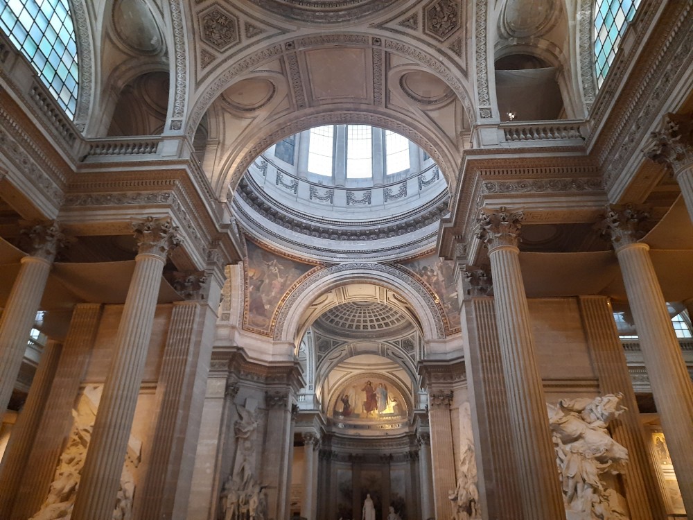 V Panteonu je mohutná kupole a bohatá vnitřní výzdoba. Také je tu Foucaultova kyvadla, které dokazuje otáčení Země. Jdeme se podívat i do krypty s hroby slavných.