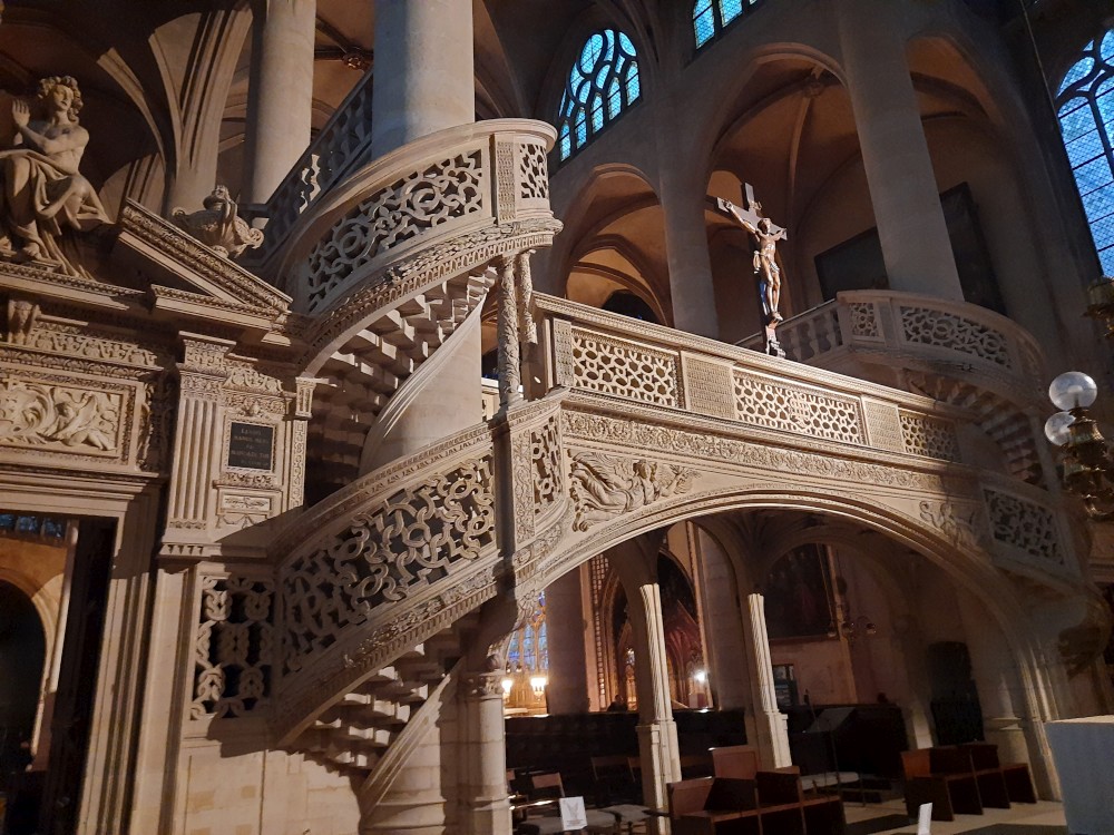 Pak pokračujeme prohlídkou Latinské čtvrti. Je tu hodně kostelů, některé z nich navštěvujeme - např. Kostel Saint-Étienne-du-Mont, kostel svatého Severína Pařížského a na závěr kostel svatého Sulpicia, kde se natáčela Šifra mistra Leonarda. Každý kostel je úplně jiný, všechny krásné. Pak se přesouváme na metro a jedeme se podívat na Centre Georges Pompidou.
