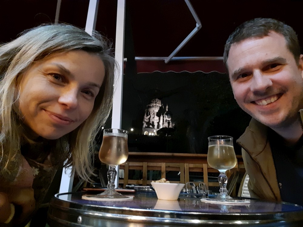Jdeme na metro a přesouváme se na Montmartre. V Le Studio Café si dáváme víno s výhledem na Sacre Coeur a pak jdeme spát.