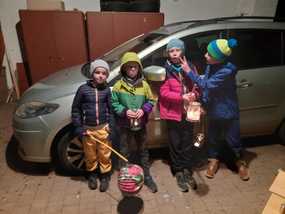 Dnes máme Svatomartinský lucerničkový průvod na Horkách. Je to už tradiční akce. Přijela Pavla s Johankou, Peťan, Wallovi, přišla teta Martina a Kepkovi. A i Martin na bílém koni přijel a rozdal dětem rohlíčky.