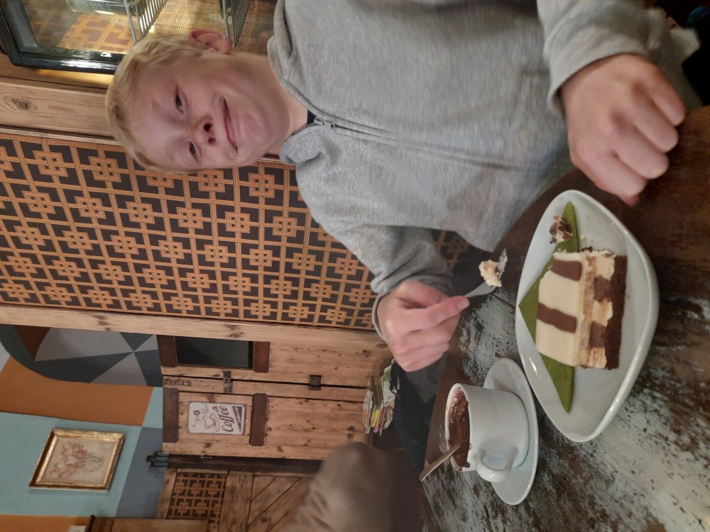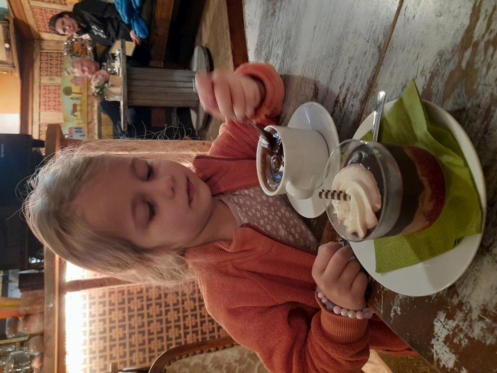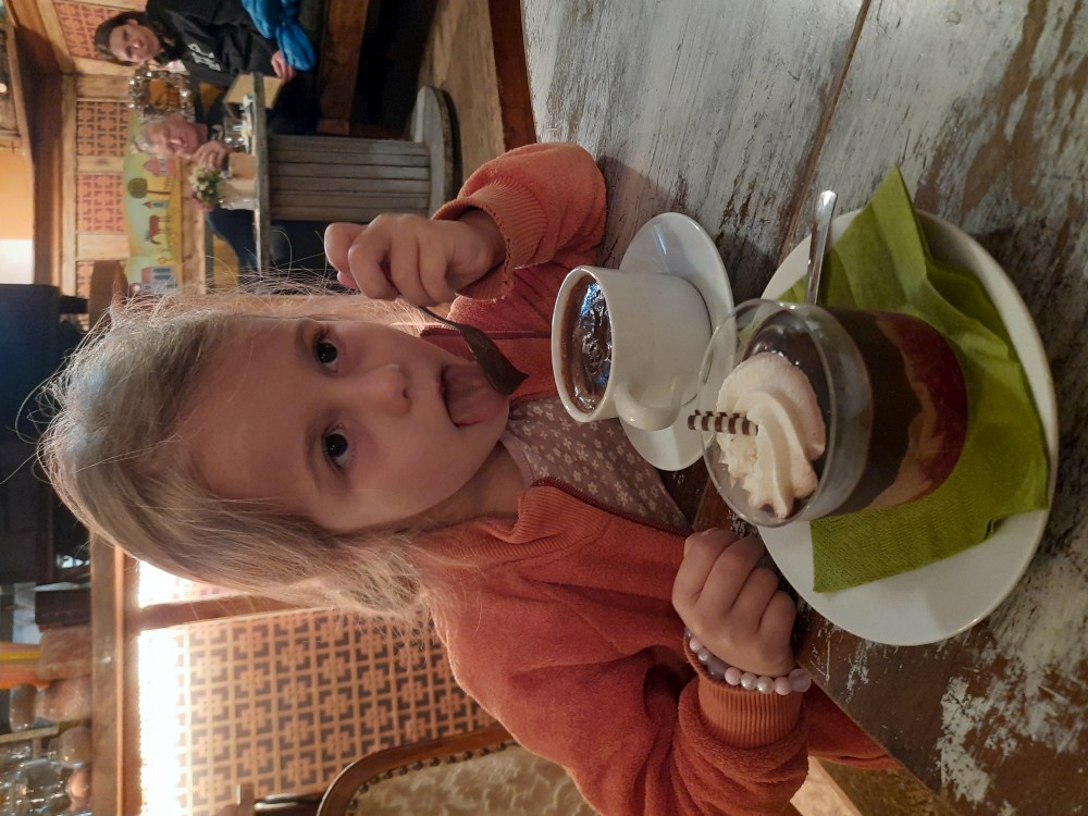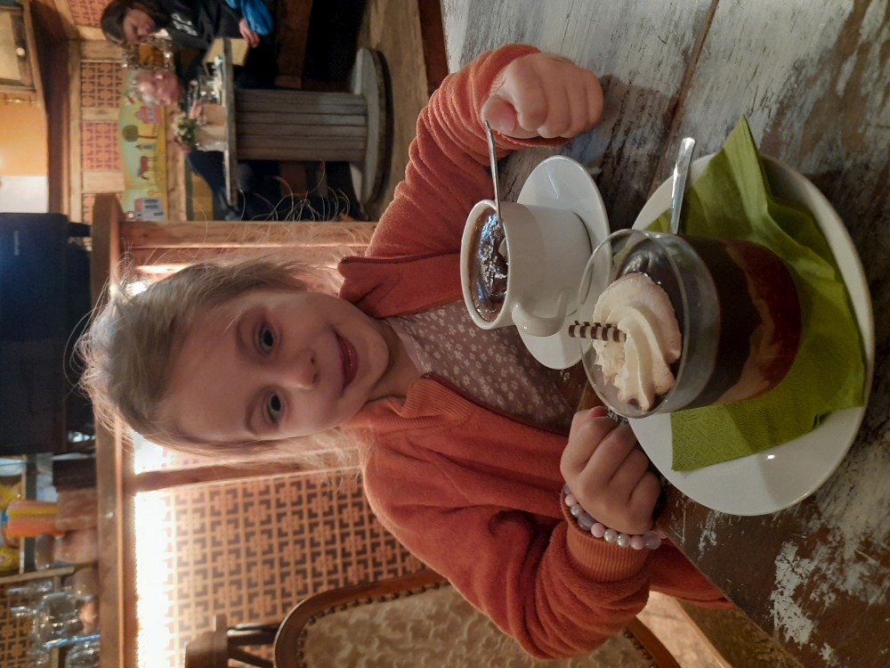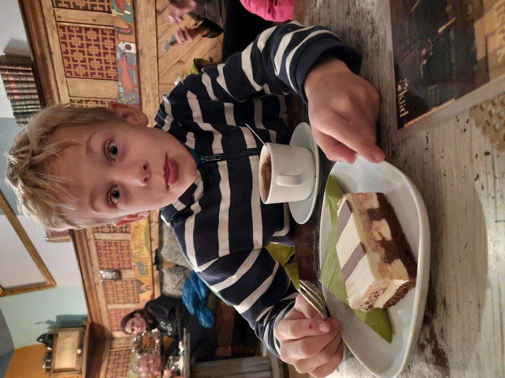 Po návratu z Chýnova jdu s dětma na procházku do města. Dáváme si horkou čokoládu a zákusky v Klidu, pak ještě večeři v Havaně. To už se k nám připojuje mamka.