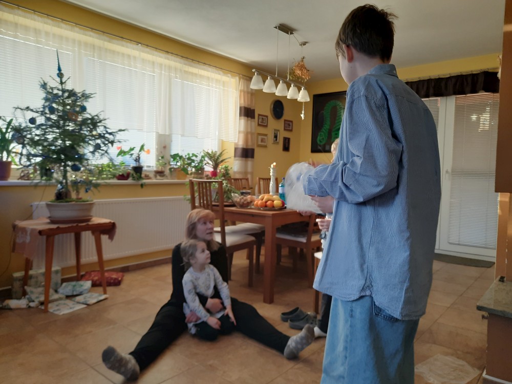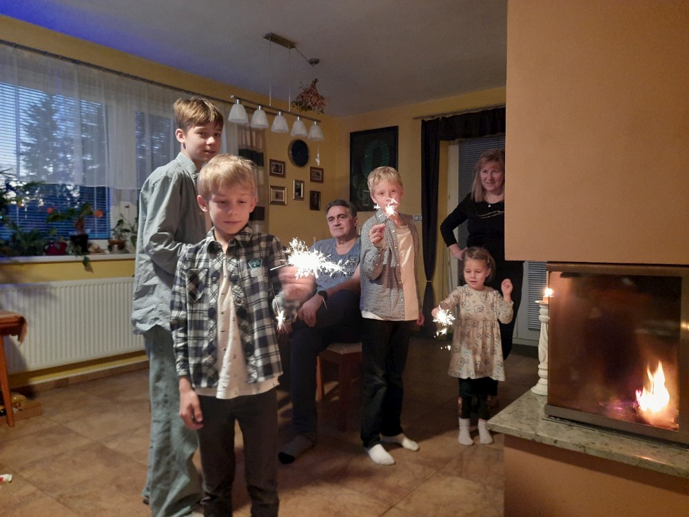 Všichni se potkáváme na Harrachovce. Tam přijíždí i Jana a zbytek našich dětí. Na oběd jedeme na Horky a odpoledne na Ježíška u babičky Hanky.
