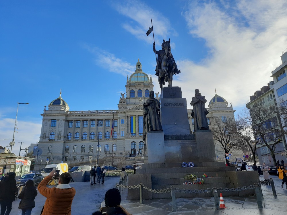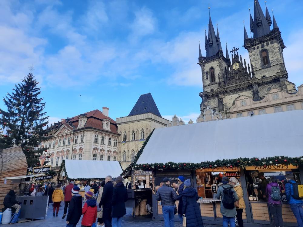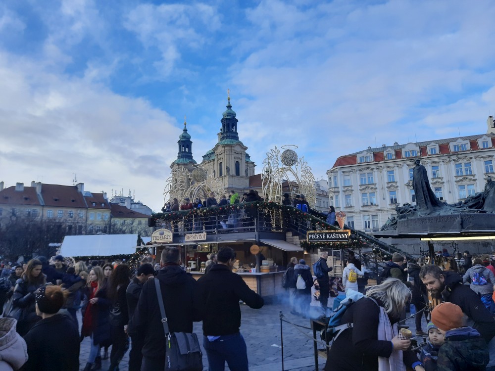 Pokračujeme přes Václavské náměstí kolem Stavovského divadla na Staroměstské náměstí na vánoční trhy. Zde si dáváme pečené kaštany a trdelník. Kolem Týnského chrámu, přes Prašnou bránu a Senovážné náměstí jdeme na vlakové nádraží a vracíme se vlakem do Tábora.