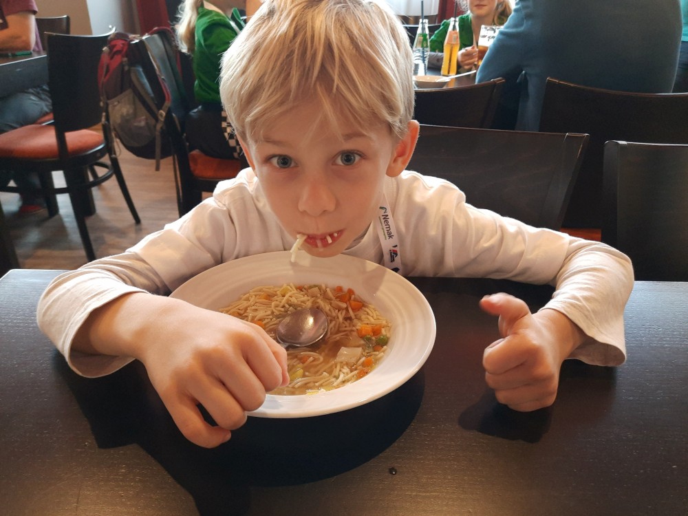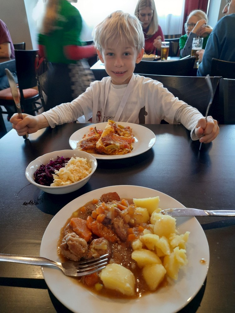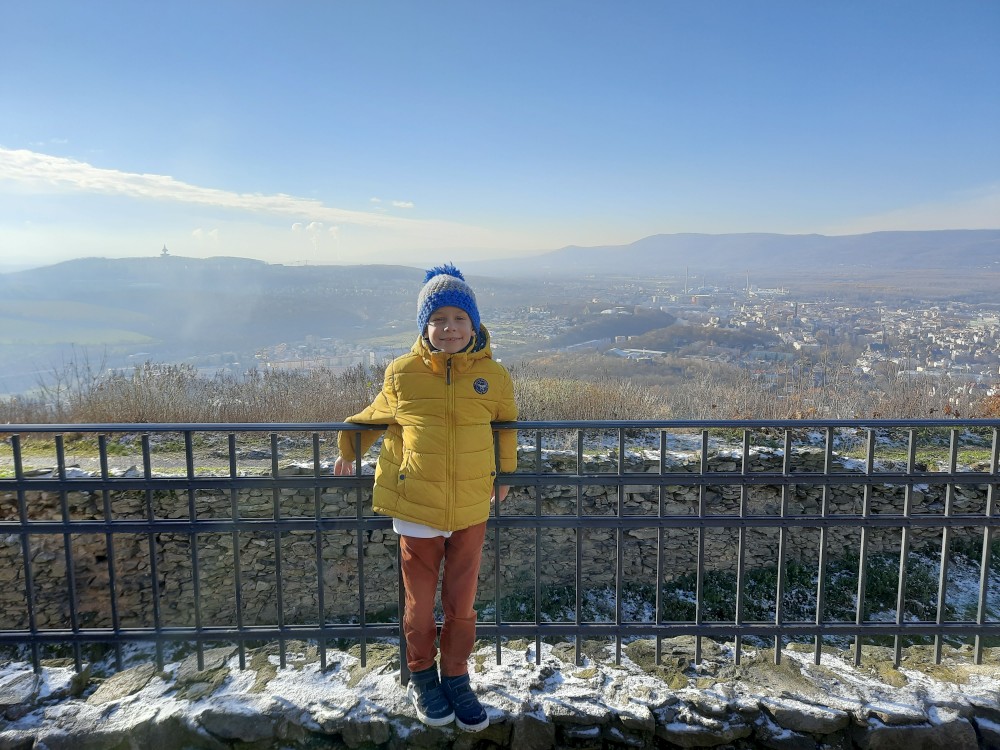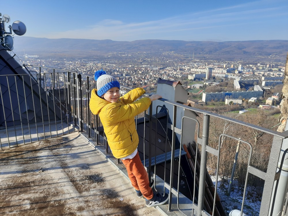 Rozhlížíme se po okolí, dáváme si občerstvení v místním okénku. Domlouváme se s majitelem, že nás jeho syn vezme na rozhlednu, která není oficiálně otevřena. Užíváme si výhledy na České Středohoří. Druhou stranou kopce se pak vracíme zpět do hotelu Panorama a Martínek pokračuje v šachovém turnaji.