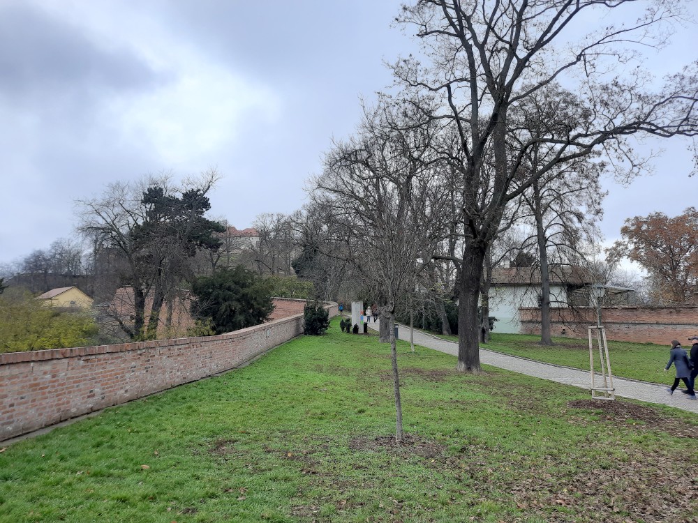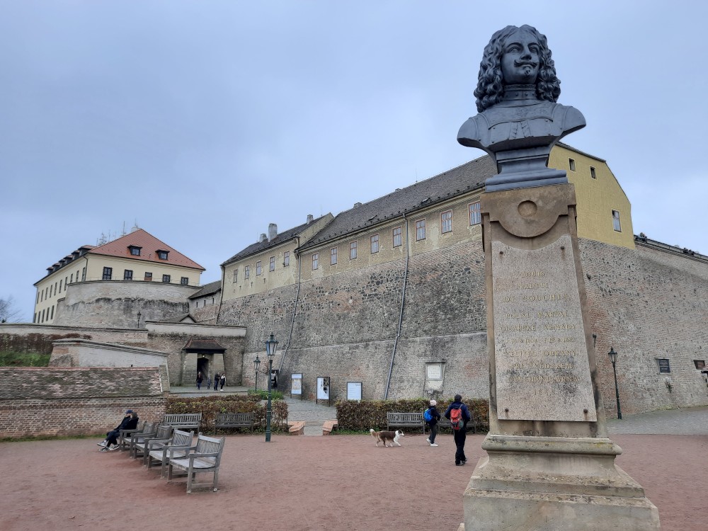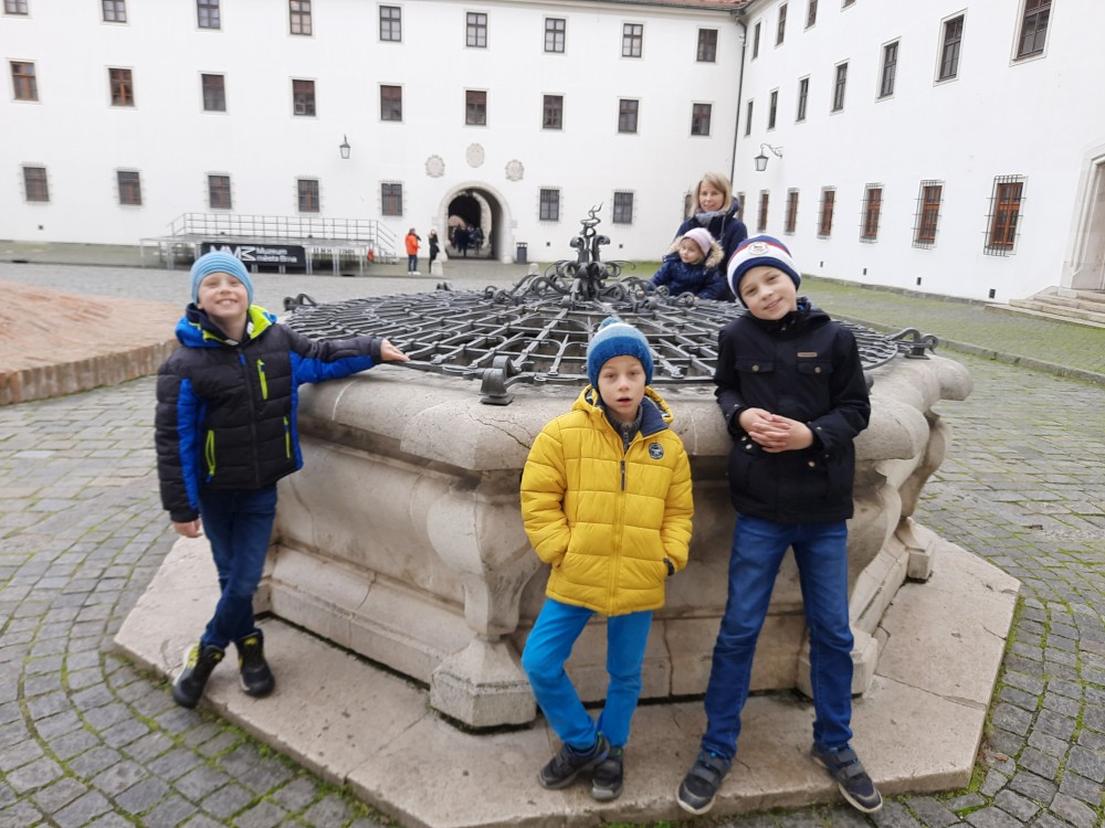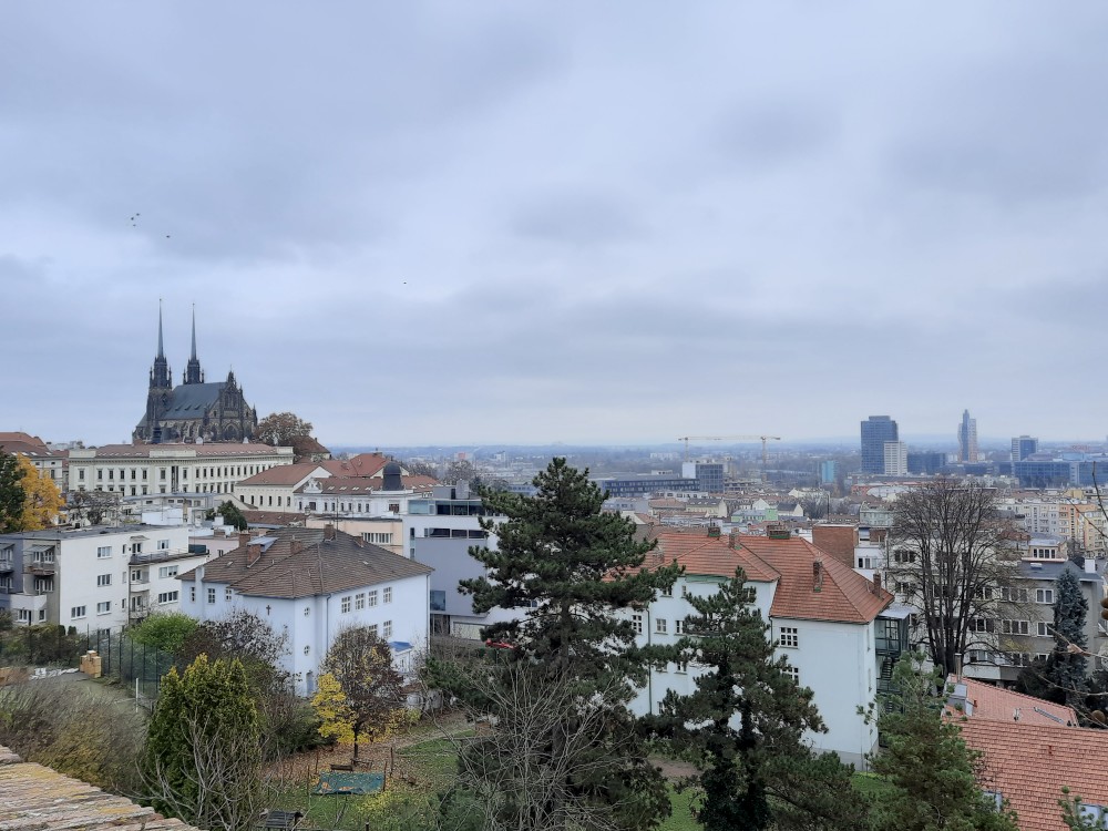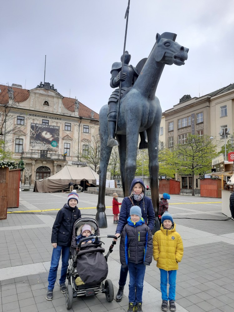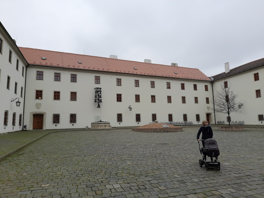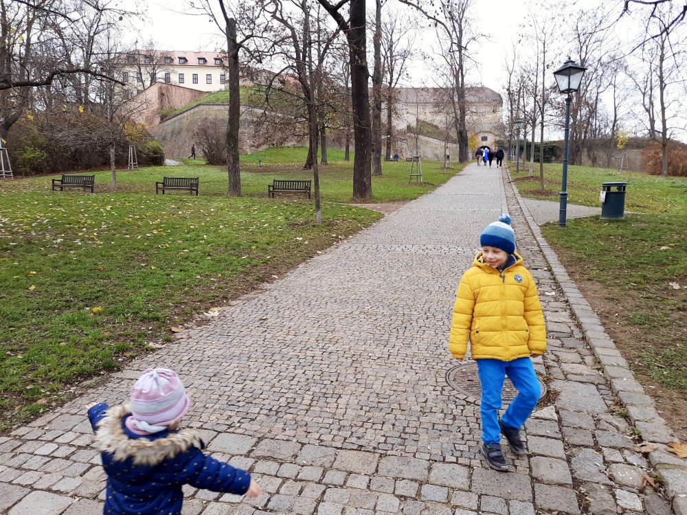 Od pomníku Jean-Louise Raduita de Souches se rozhlížíme po Brně. Pak stoupáme na hrad. Posloucháme zvonkohru. Pak už se vracíme přes park Špilberk kolem JAMU a ústavního soudu k autu a pak hned do tělocvičny, abychom stihli závody. Bětuška spí v kočárku. Po závodech se vracíme do Tábora.