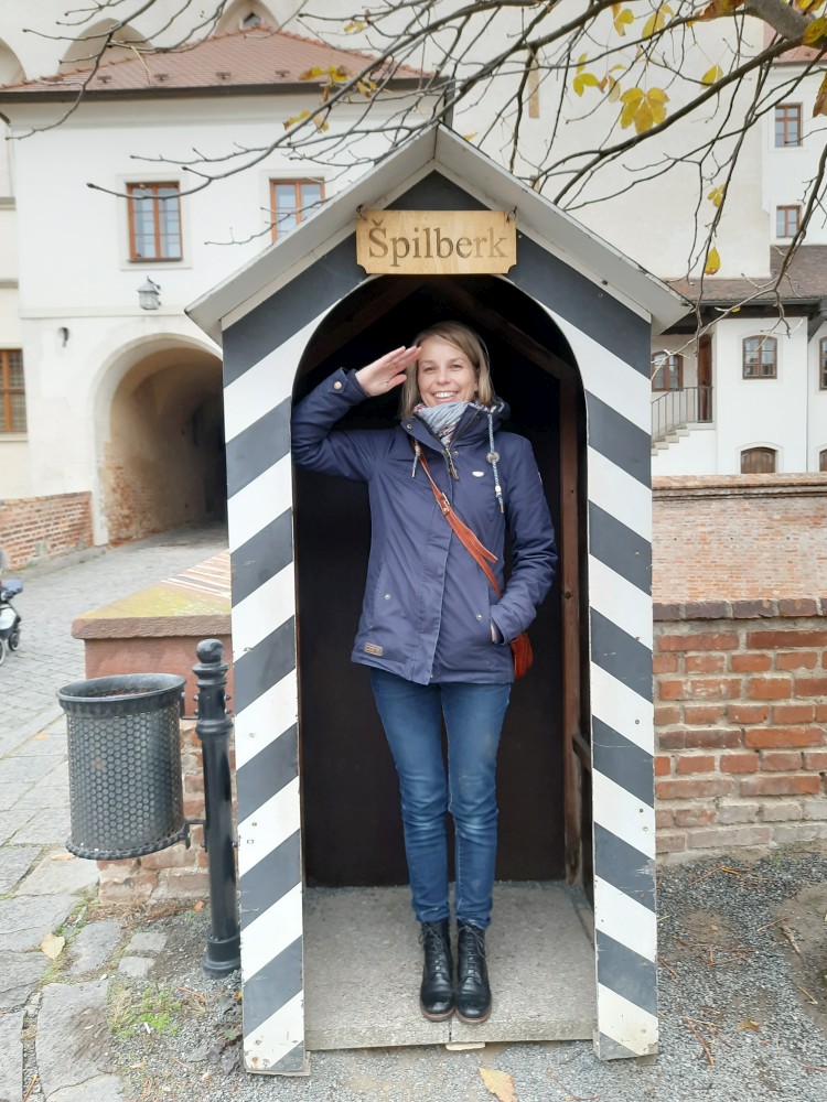 Jdeme na Moravské náměstí k soše Jošta Moravského. Pokračujeme na náměstí Svobody k Brněnskému orloji. Pak obědváme v restauraci U Zlatého meče vedle Špalíčku. Po obědě pokračujeme přes Šilingrovo náměstí na hrad Špilberk.