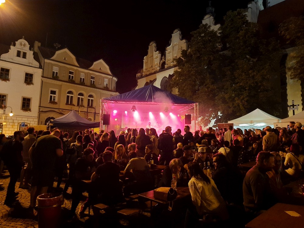 Slavíme 12.výročí od svatby. Loni jsme byli v Kutné Hoře, letos se vracíme k malé oslavě v Táboře. Na Žižkově náměstí je Vinný košt. Ochutnáváme nějaká vína, posloucháme muziku. Pak jdeme do restaurace La Cave v hotelu Dvořák. Dáváme si večeři. Pak se ještě chvilku vracíme na náměstí.