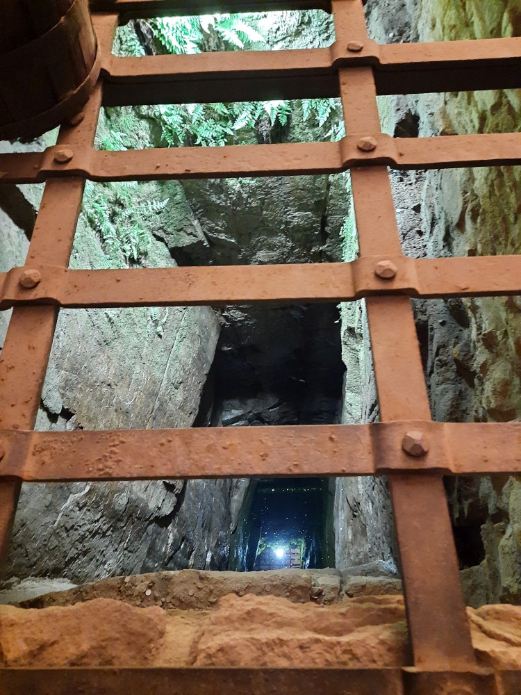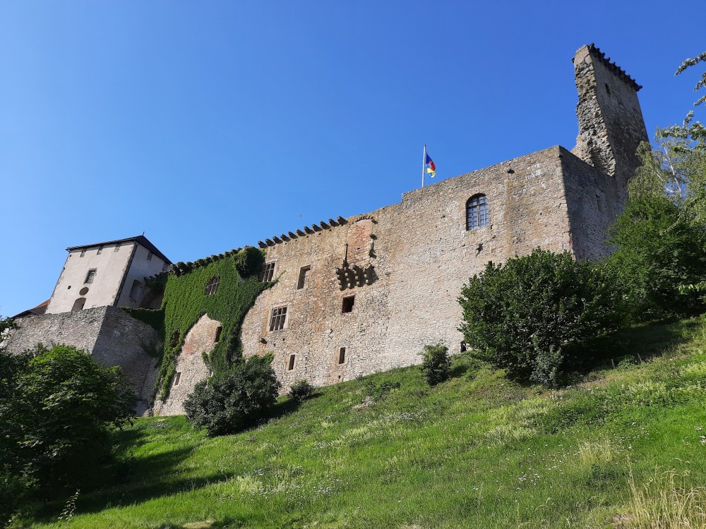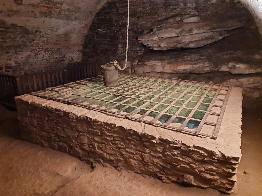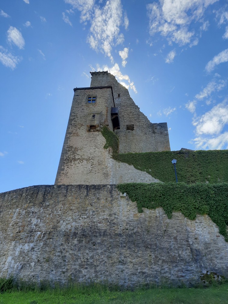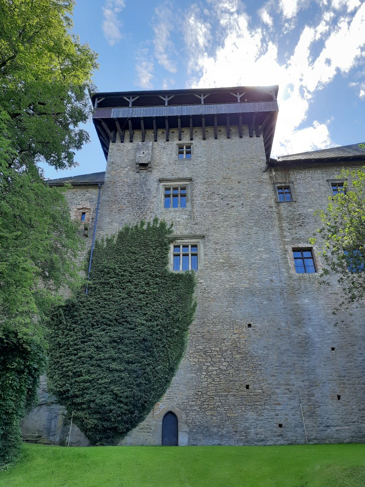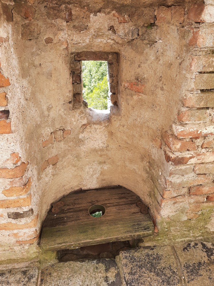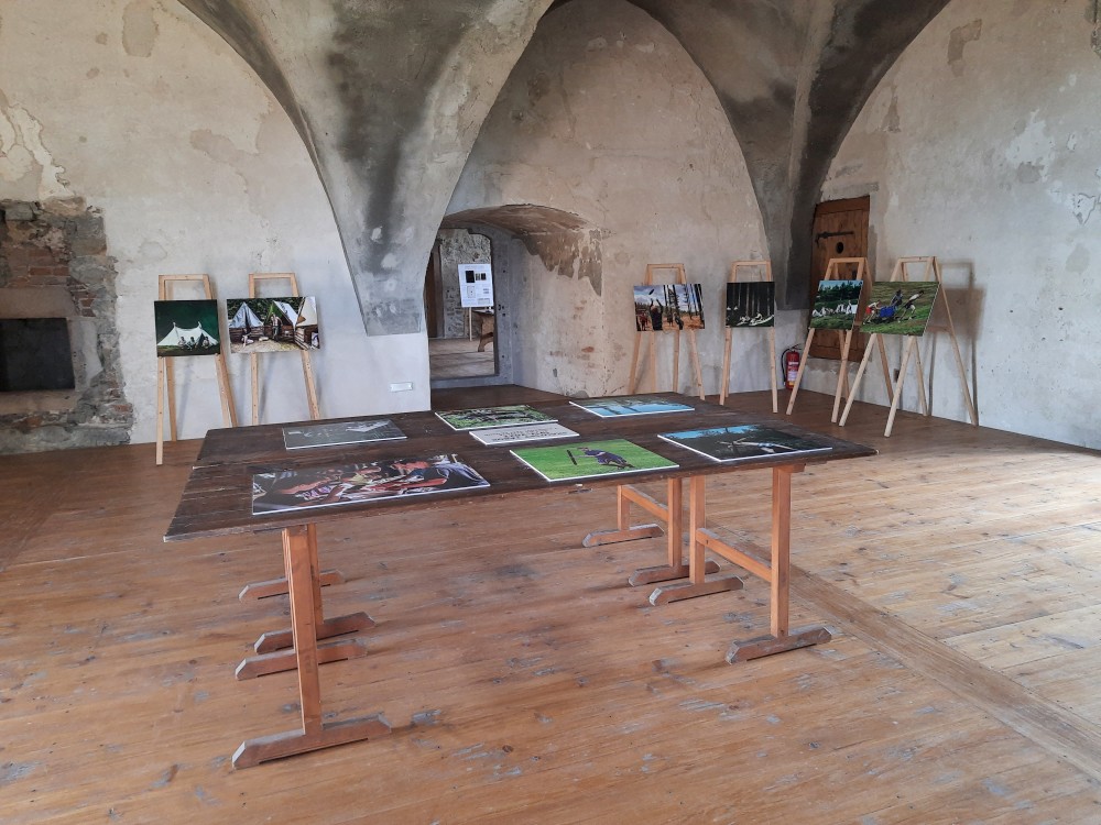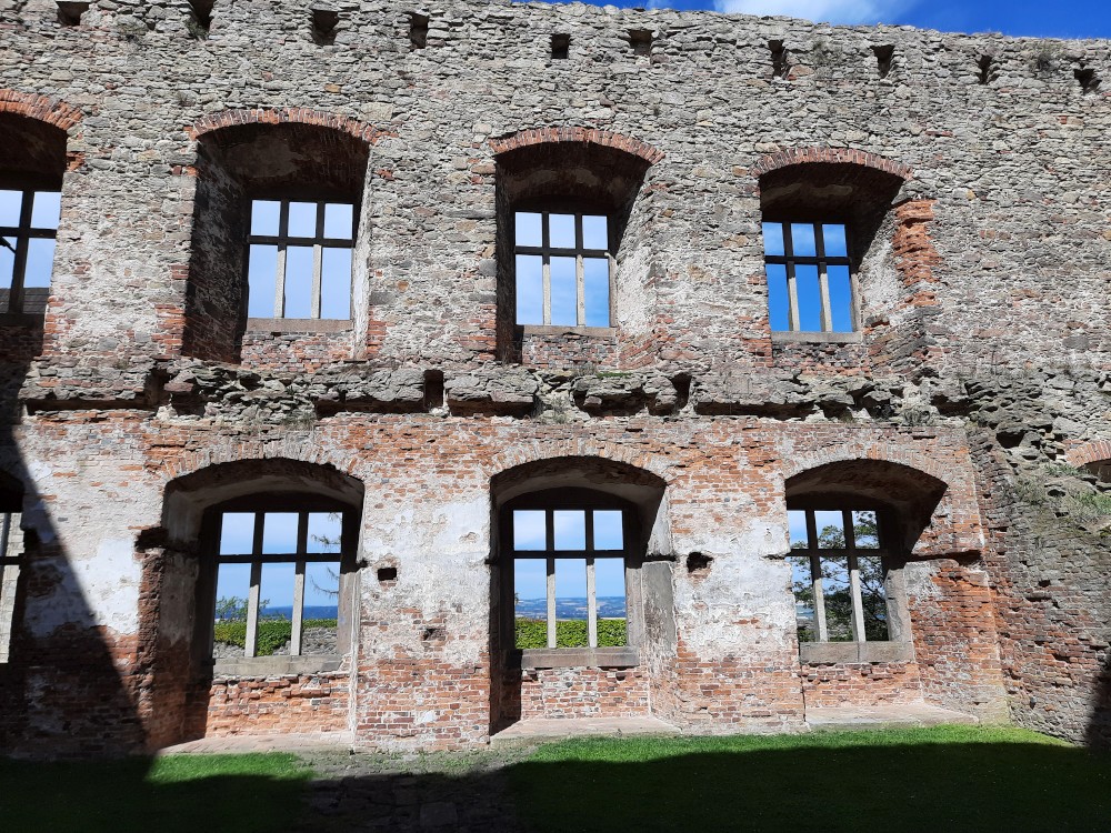 Hrad obcházíme podle plánku. Kluci objevují první cedulku s bobříkem a plní první úkol. Mají 30 s vyset za ruce na tyči. Pak je čeká hned druhý úkol, mají dojít na konec temného sklepa. Pak už stoupáme na Velkou věž. Vlají zde česká a ukrajinská vlajka.