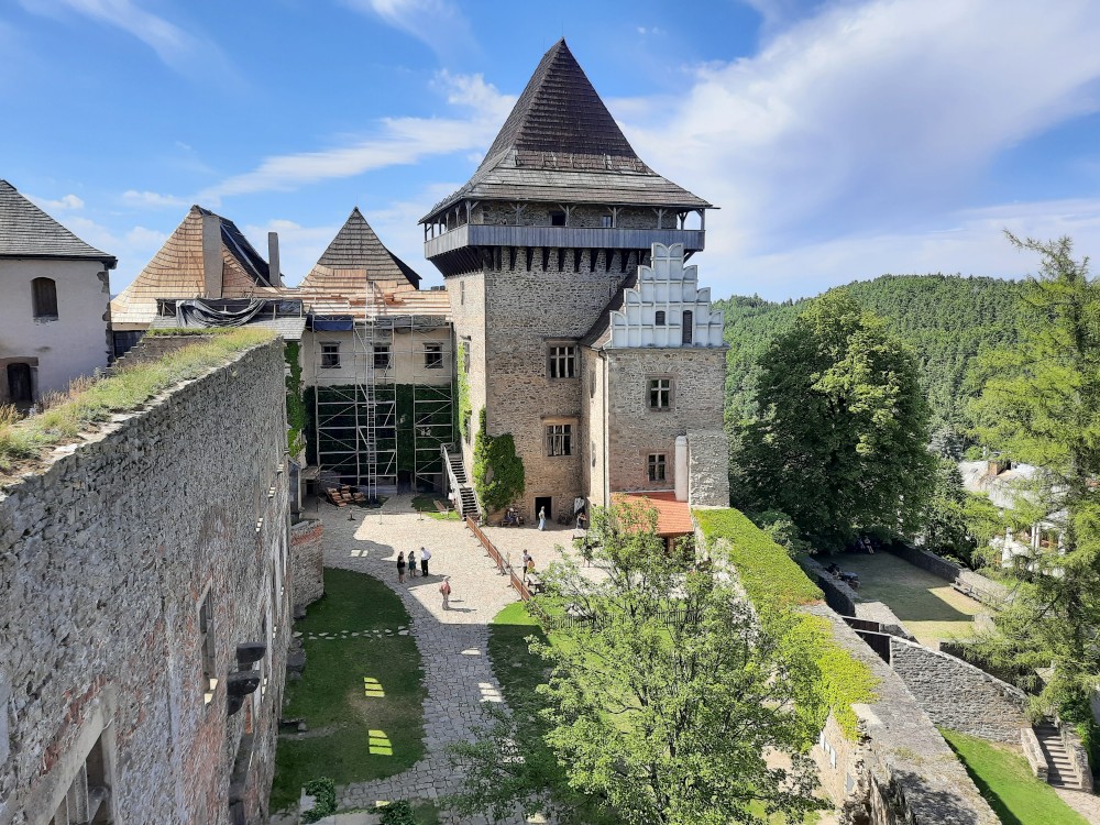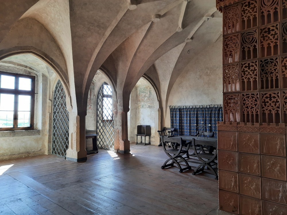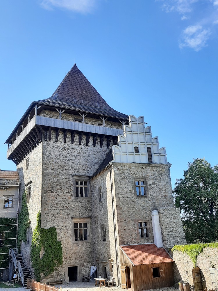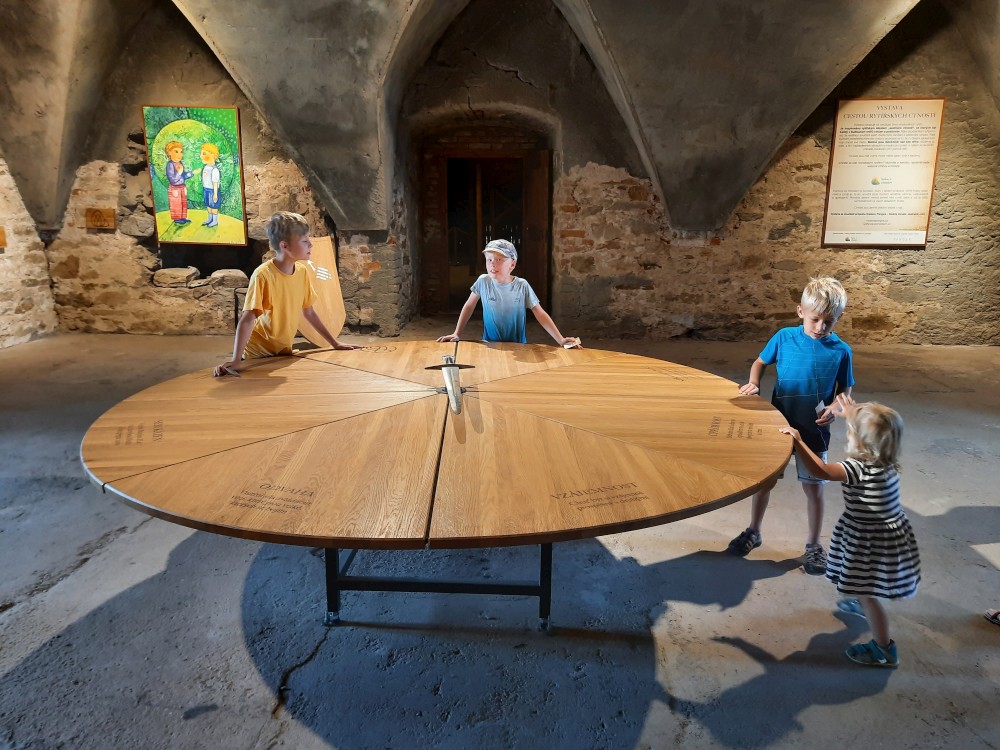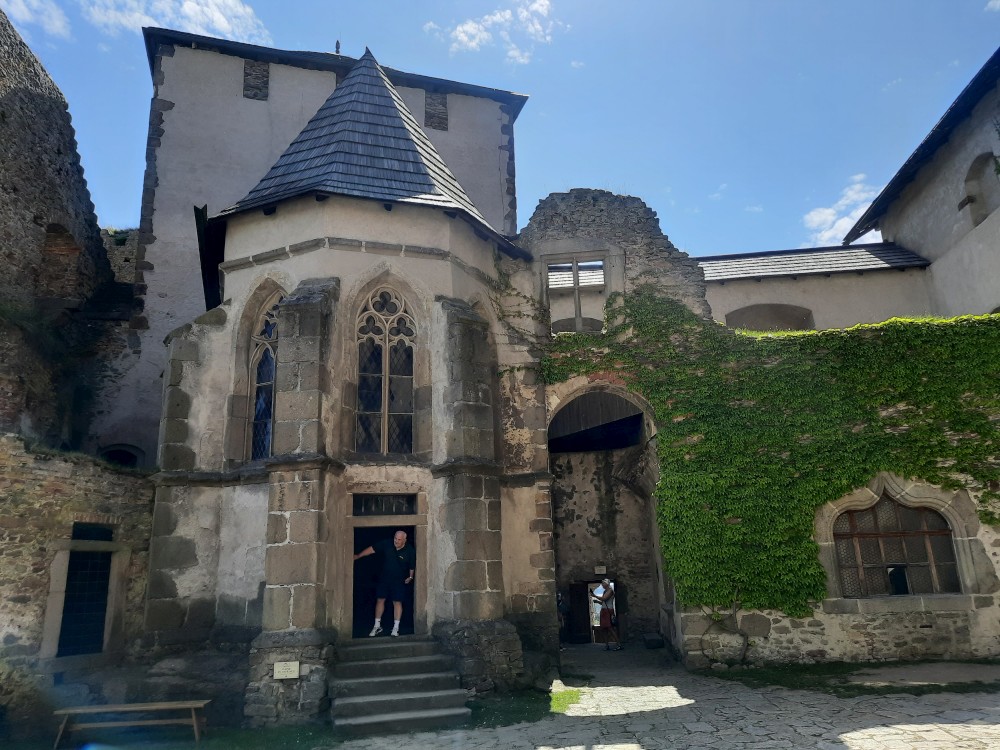 Kaple je nejcennějším prostorem hradu. Byla postavena v první polovině 14. století a v roce 1417 zde byli vysvěceni první husitští kněží. Přecházíme do Trurnovského paláce. Je to vysoká věž s ochozem s dalekými výhledy. Kluci ve věži vážou uzly a házejí pěnovými míčky na terč.