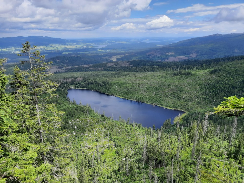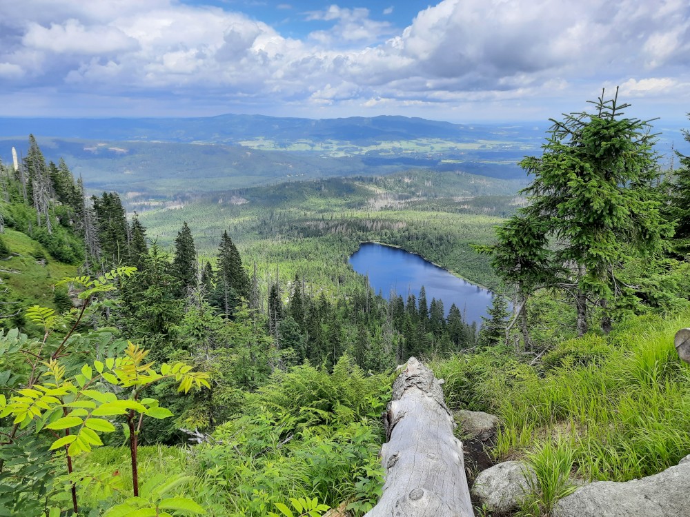 Pak už klesám po žluté přes Kučerovu vyhlídku a pomník Adalberta Stiftera dolů k Plešnému jezeru. Odtud jdu nejkratší cestou k auto - po zelené na Hučinu a po modré na Jelení Vrchy. Byl to vydatný výlet, cca 25 km a 1000 m výškových. Mám z toho radost.