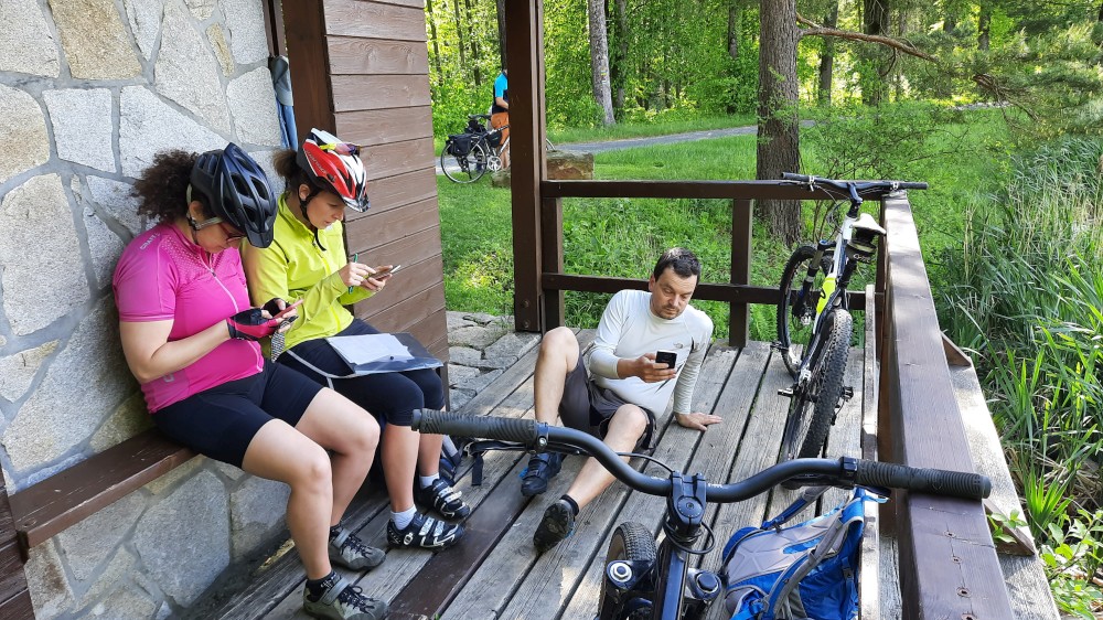 Také trochu luštíme, protože potřebujeme C-kódy na imunitu. Večer se nám podařilo úspěšně získat toužený pátý kód. Ráno hned po startu hry můžeme za C-kódy koupit imunitu. Můžeme tedy luštit a soutěžit naplno bez obavy, že vyhrajeme a budeme příští rok pořádat. Stanoviště hry jsou zde: https://mapy.cz/s/gohohojago. Na většině stanovišť jsem nebyl. Musím se fyzicky šetřit, takže se věnuji spíše luštění. Ale i když neobjíždím stanoviště, dostávám se až do informačního centra Rychlebské stezky, což je kousek od nejvzdálenějšího stanoviště hry. Všichni se tu potkáváme a společně luštíme a dáváme si oběd.