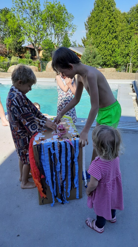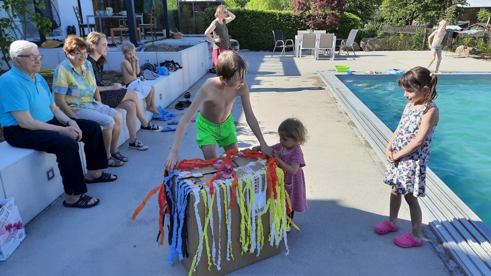 Martínek bude mít narozeniny. Slavíme již dnes u bazénu strejdy Marti.