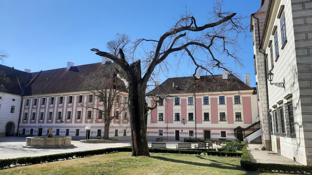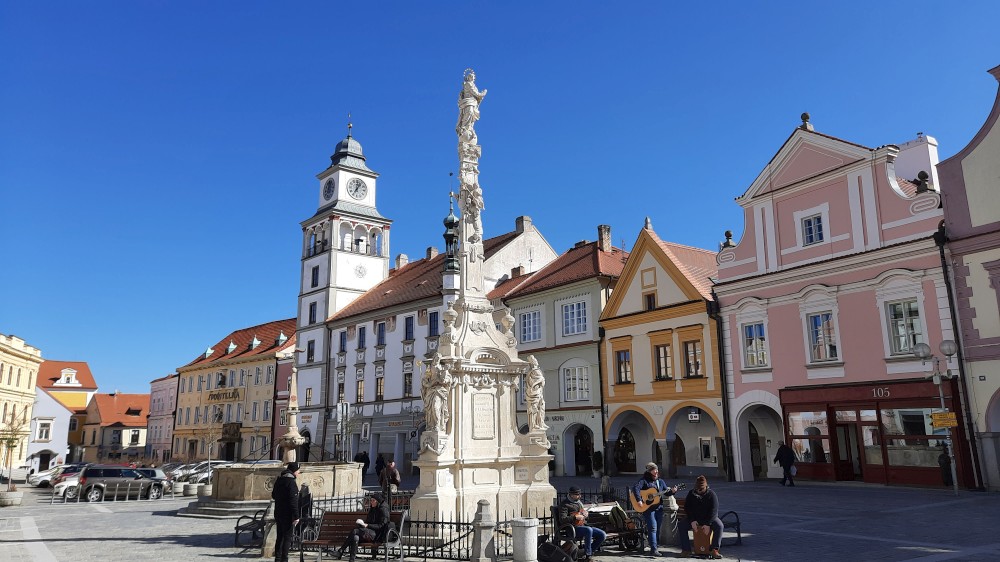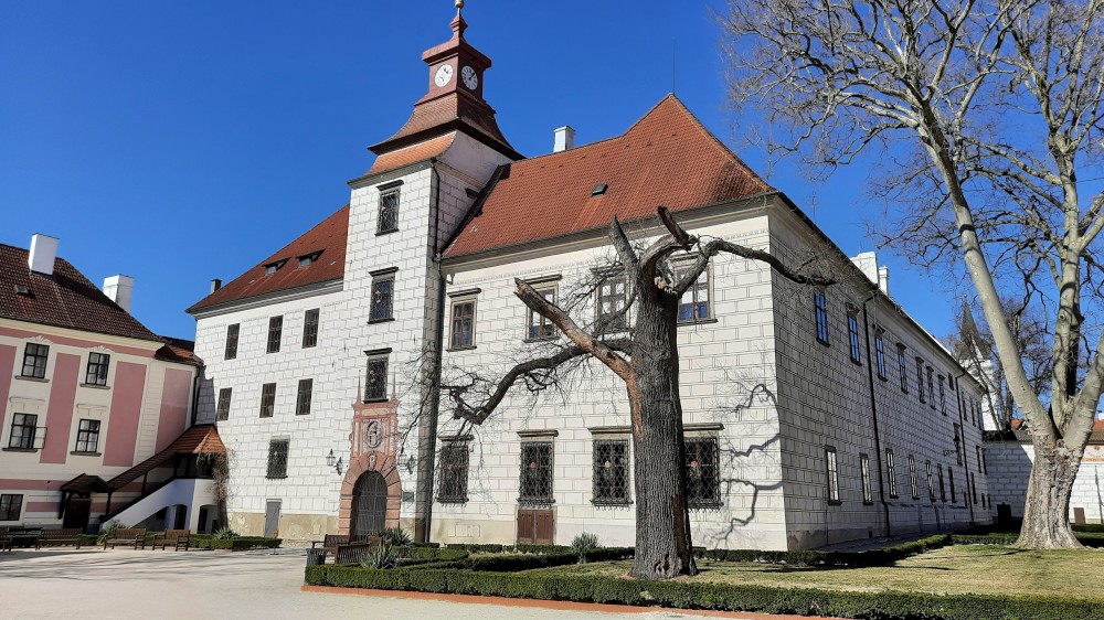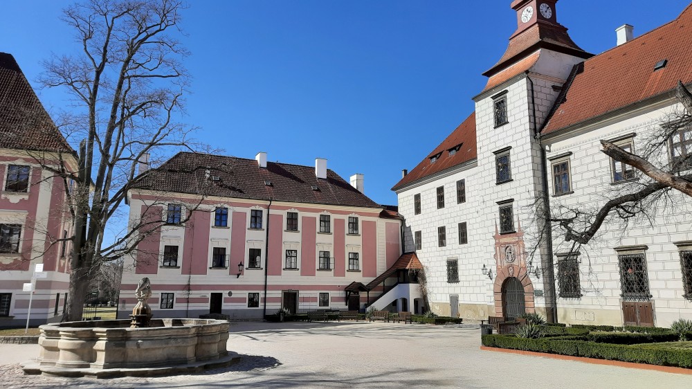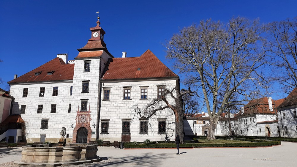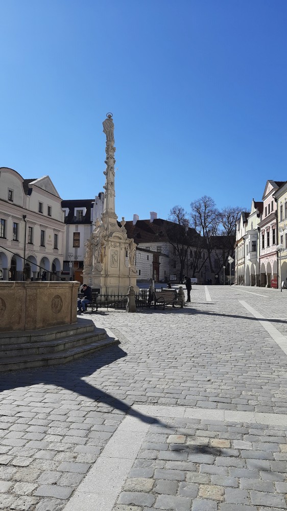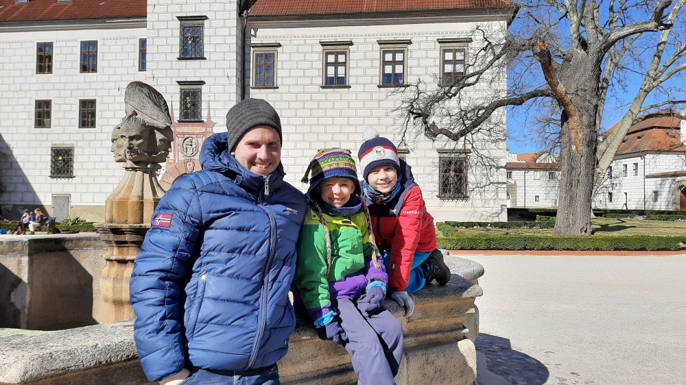 Dnes Jiříkovi končí fotbalové soustředění ve Staré Hlíně. Jedeme si ho vyzvednout. Jedeme dříve, abychom ještě před tím udělali výlet po Třeboni. Dáváme si oběd na Pintovce a vyrážíme. Parkujeme kousek od třeboňského náměstí a jdeme se projít kolem zámku.