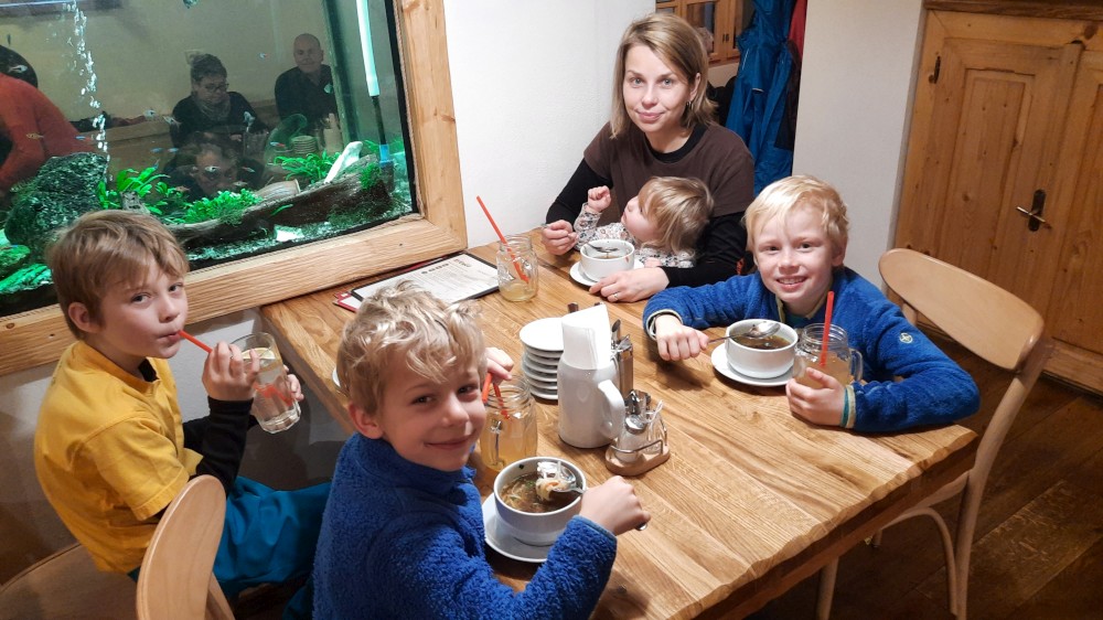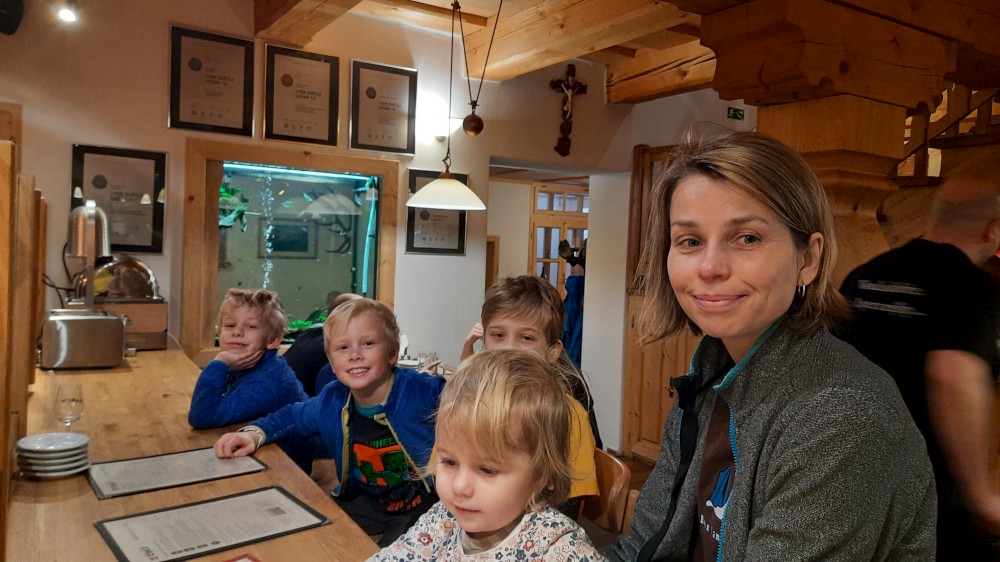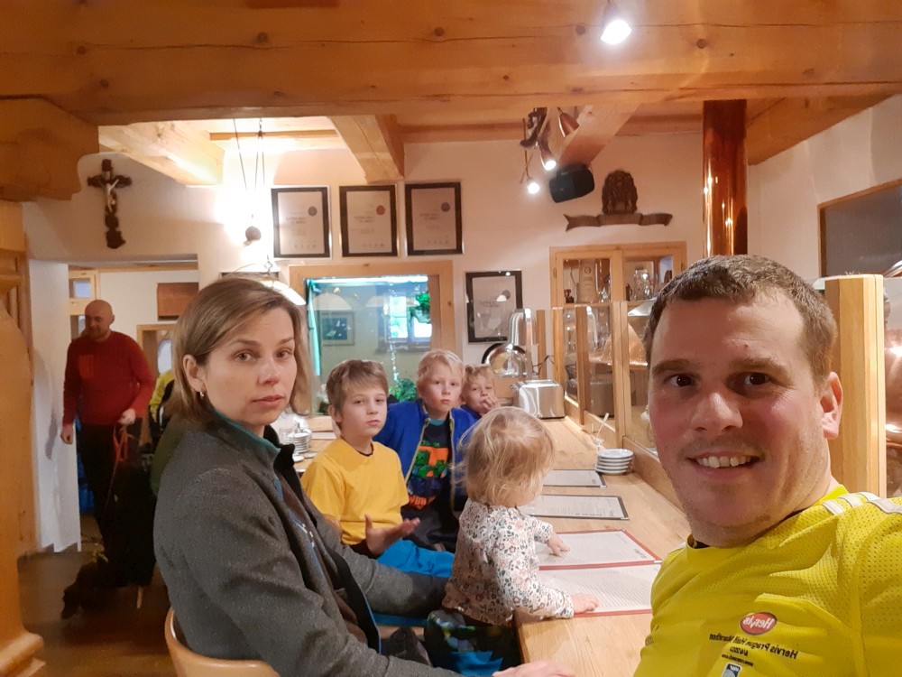 Stoupáme po prudké cestě na Tříjezerní slať a pak dále na rozcestí pod Oblíkem. Pak už nás čeká sjezdík na Javoří pilu. Kolem Roklanského potoka jedeme po Šumavské magistrále zase na Rybárnu a odtud stejnou cestou zpět na Modravu. Pěkný okroužek, máme radost. Kluci už toho mají celkem dost. Zastavujeme na občerstvení v pivovaru Lyer a pak jedeme domů.
