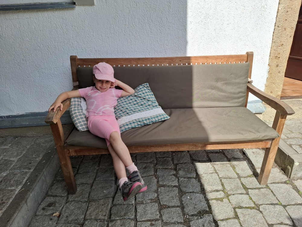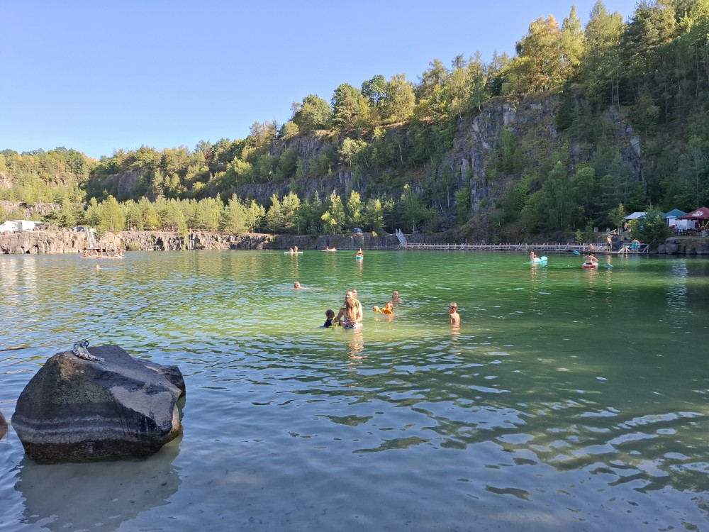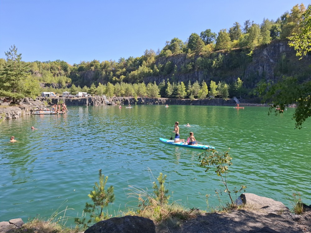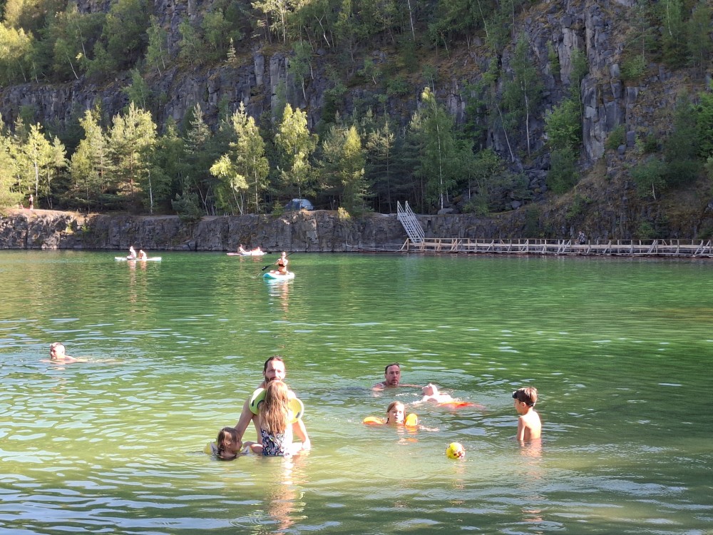 Dnes má být velké horko. Plánujeme navštívit přírodní koupaliště v zatopeném lomu na Hradišťském vrchu u Konstantinových lázní. Dělíme se na skupinky. Přímo z mlýna vyráží cykloskupinka, kde jsou všichni naši kluci. Já jedu nejdříve autem do Bezdružic pro nějaké mazání a obvaz na bolavou nohu. Dávám si kávu v kavárně. Jana připravuje věci na koupání a čeká s Bětuškou, Živuškou a Johankou v mlýně. Pavla s Honzou jedou pracovat do kavárny v Bezdružicích, kde je lepší internet.