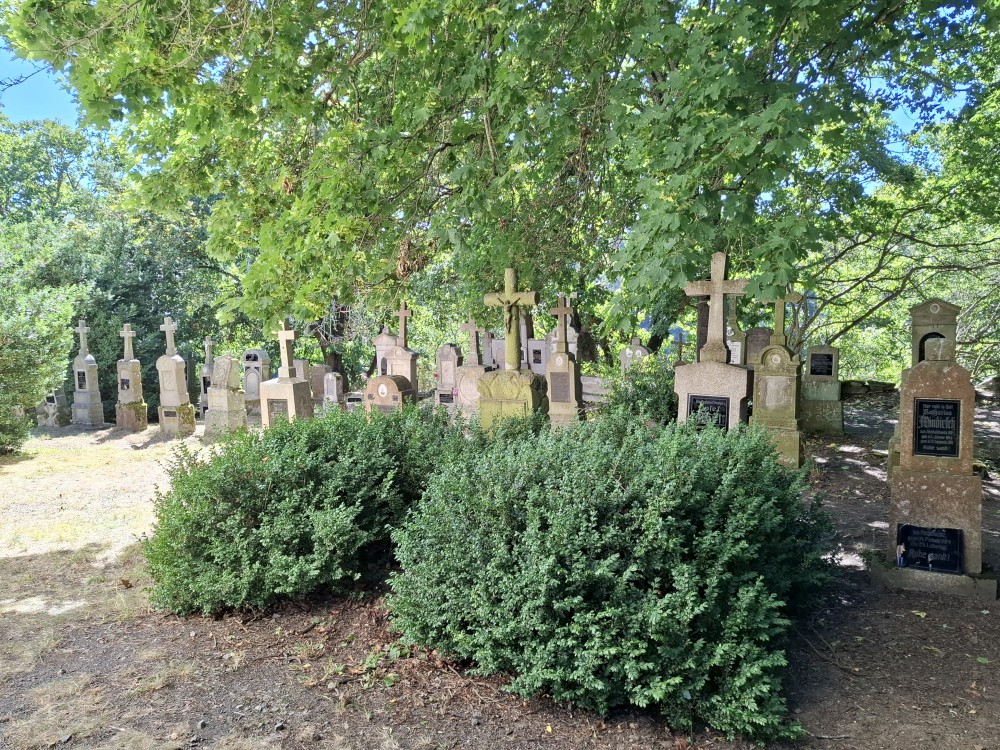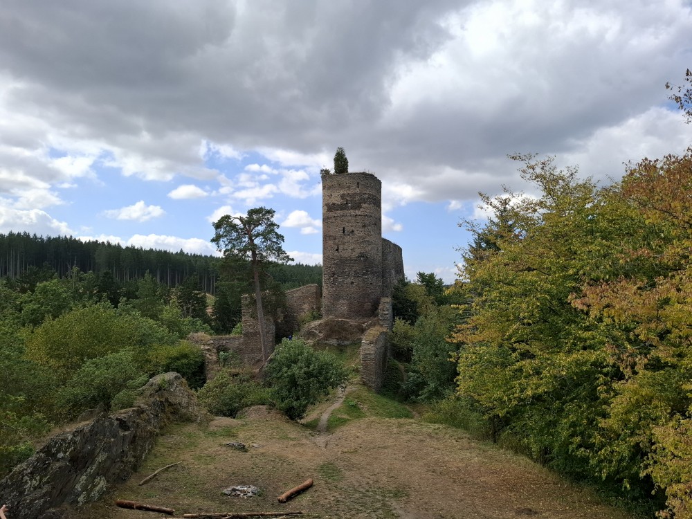Naučnou stezkou se dostáváme k Židovskému hřbitovu. Odtud už musíme celkem spěchat, abychom stihli prohlídku. Cestou se stíhám zastavit na zřícenině hradu Sychrov.