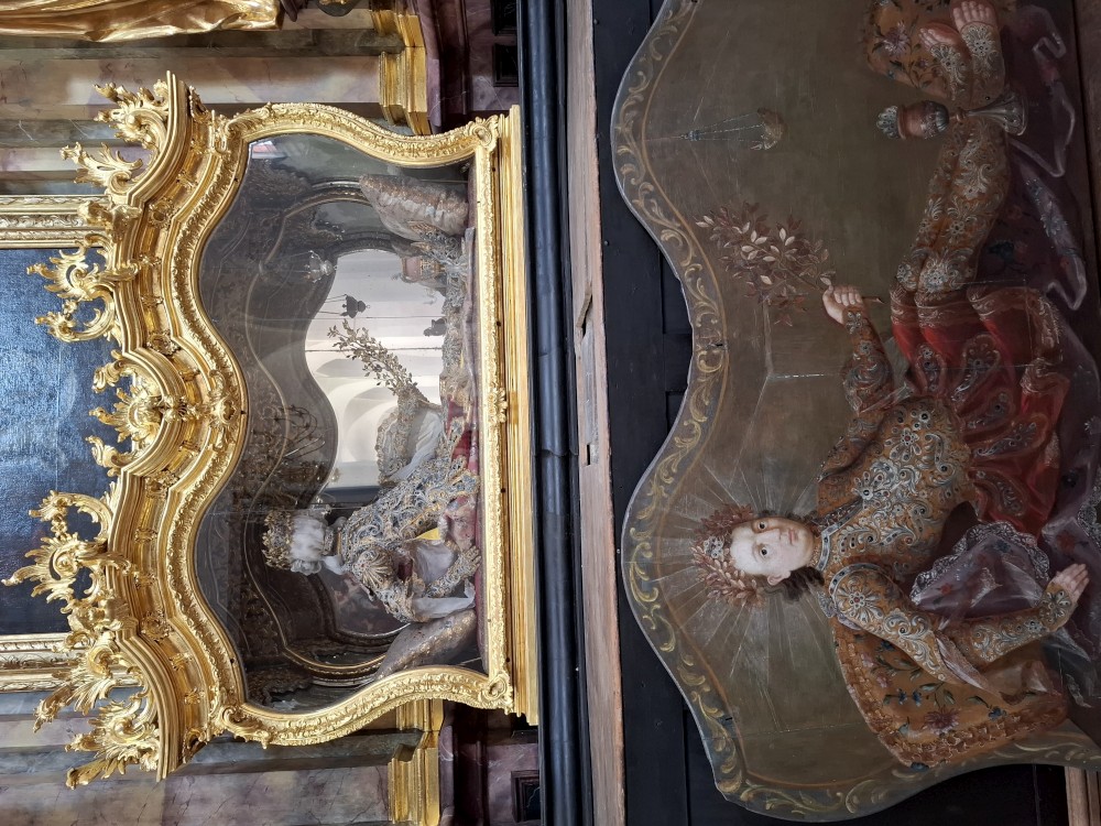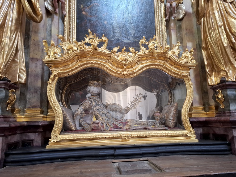 Také jsou zde ostatky sv. Antonína Paduánského. Je zde takový sarkofág, nebo spíše vytrína, kde je kostra oblečená do zdobného šatu. Dnes je zrovna výjimečně odkrytá, takže je vidět dovnitř.