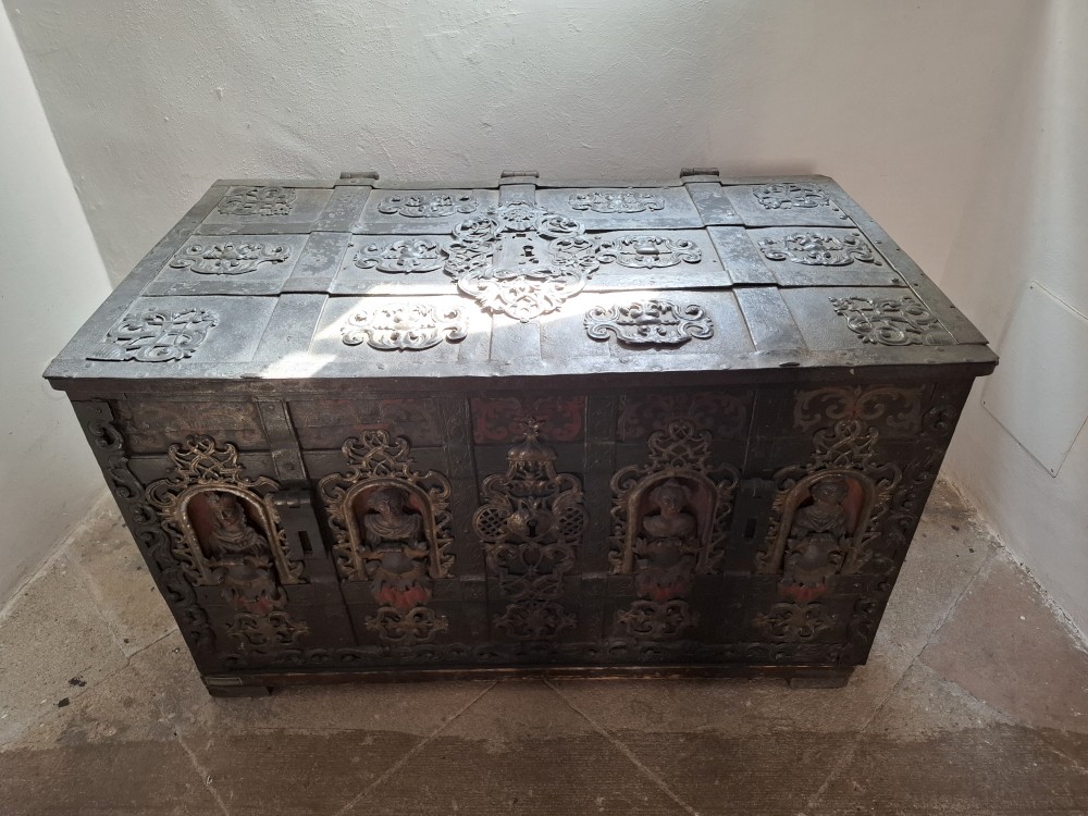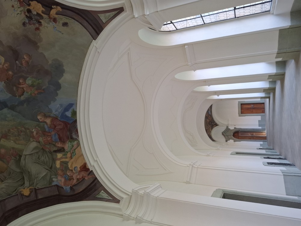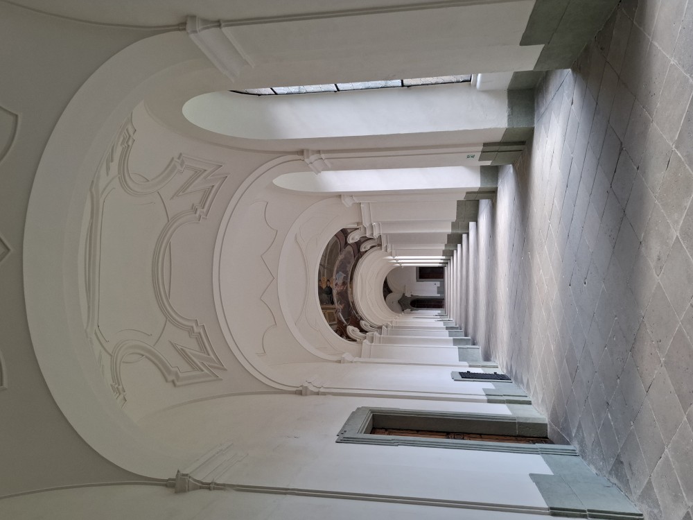 Postupně procházíme různými kaplemi, ale jdeme se podívat i na záchody - splašky šly rovnou do vody tekoucí pod klášterem. Také jsou zde zajímavá samonosná schodiště ve tvaru šroubovice nebo rezervoáry vody sloužící ke kontrole výšky vodní hladiny, která byla pro stabilitu kláštera nezbytná.