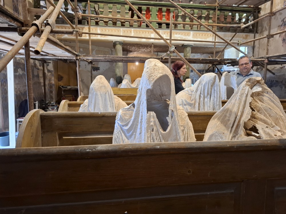 Kostel byl postaven už ve 14. století, ale po požárech a pozdějším zřícení části stropu v roce 1968 začal chátrat. Změnu přinesl nápad studenta Jakuba Hadravy, který v roce 2012 vytvořil do lavic desítky bílých „duchů“ (prý jsou to věřící, ale každý v tom prý vidí duchy) ze sádry a textilu. Od té doby je kostel známý jako „kostel duchů“ a přitahuje návštěvníky z celého světa.