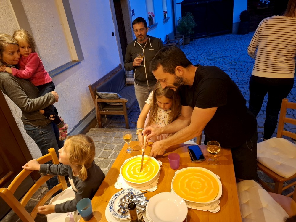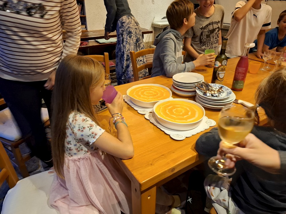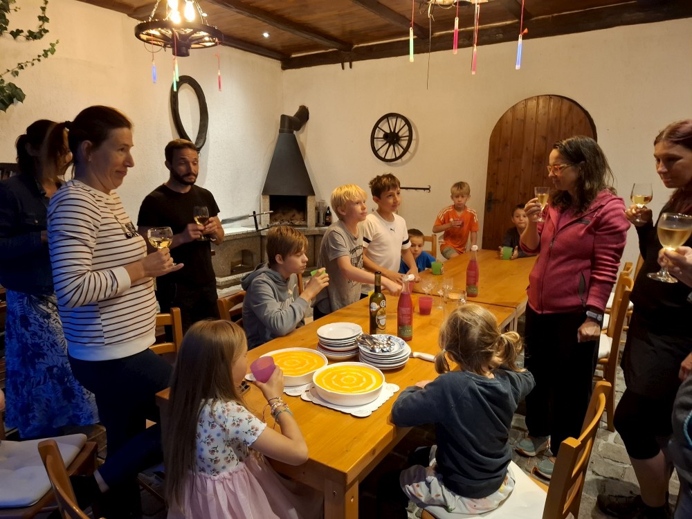 Večer slavíme Johanky svátek. Johanka dostala dort a různé dárečky, od nás takový náramek z Manětína s motýlkem. Večer pokračuje posezením u vína s hostinou.