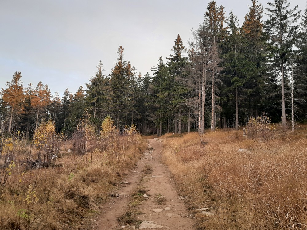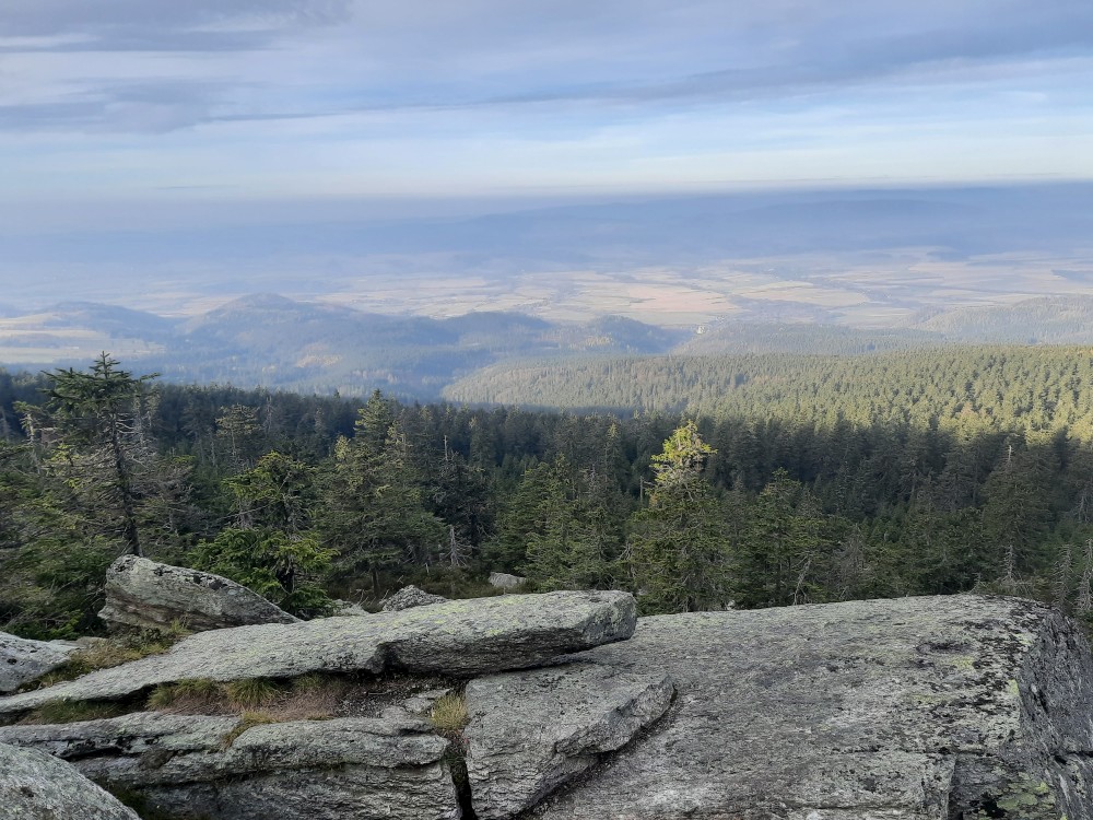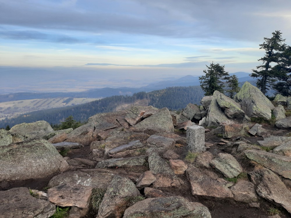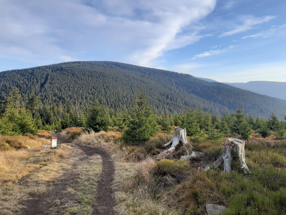 Vyrážím na výlet do hor. Tentokrát zdolat vzdálený Králický Sněžník. Jedu hodně brzy ráno, už kolem půl sedmé dorážím do Horní Moravy, kde nechávám auto. Stoupám po modré a pak červené až k hranici s Polskem. Pokračuji hřebenovkou přes rozhlednu Klepáč do sedla Puchača a pak po zelené přes Hraniční skály na Malý Sněžník.
