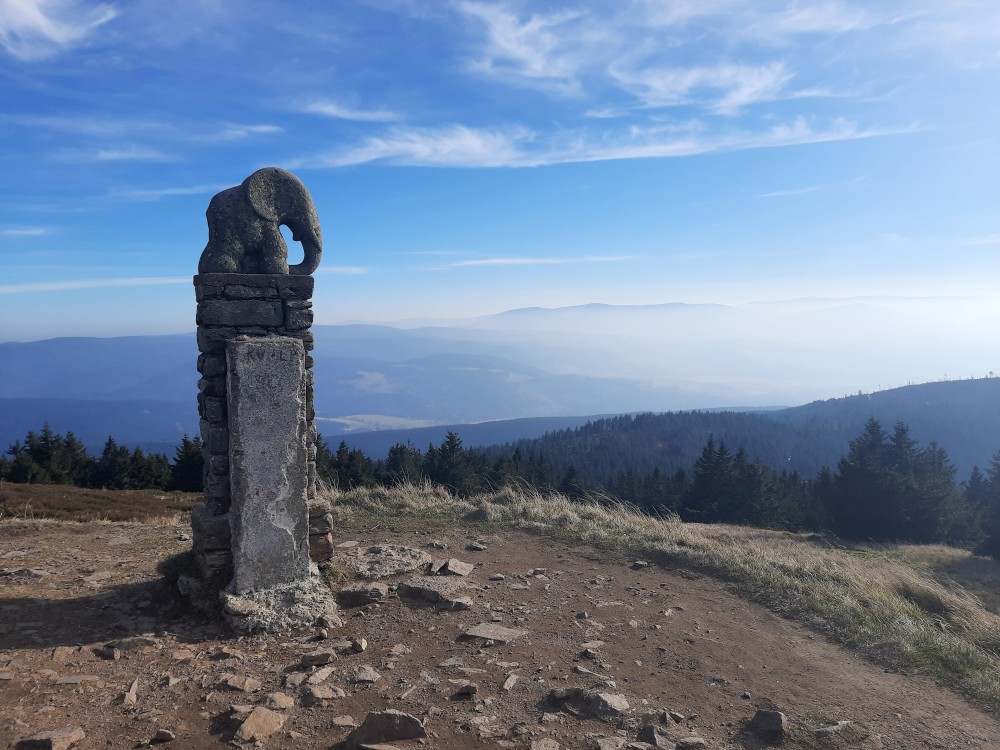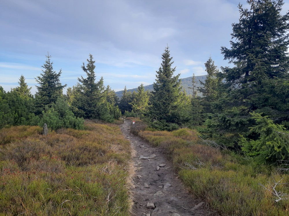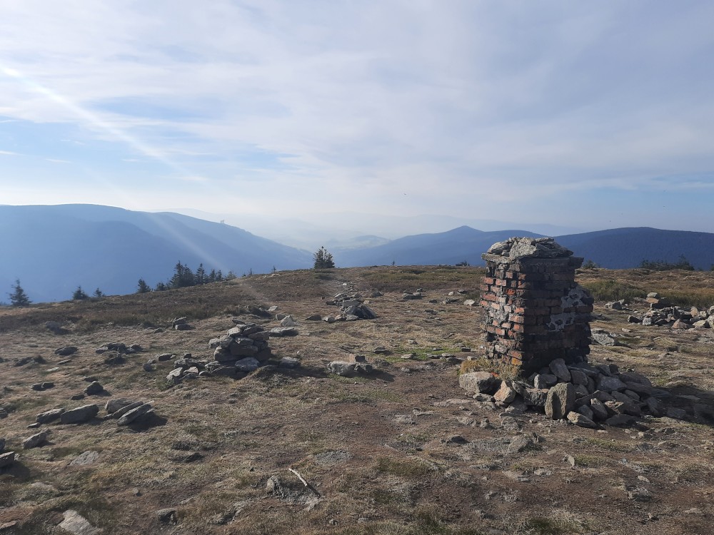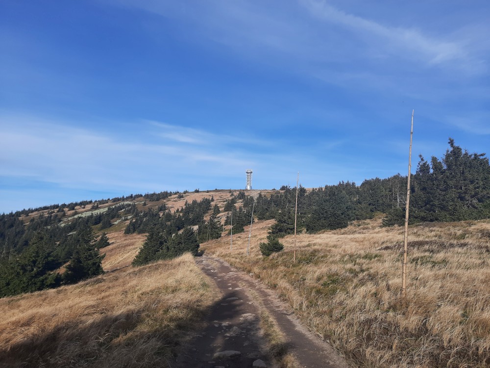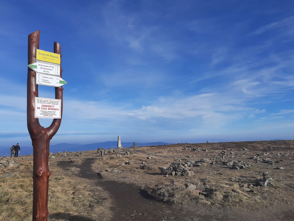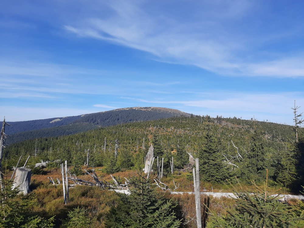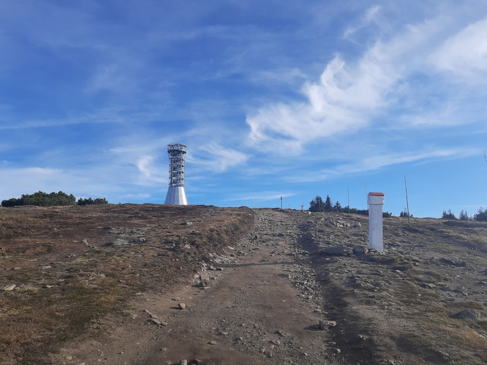Pak to beru kousek přes Polsko až k červené vedoucí na vrchol Králického Sněžníku. Na vrcholu probíhá stavba Rozhledny a dost tu fouká. Po chvilce strávené na vrcholu klesám k pramenu Vltavy a k soše slůněte. Pak jdu přes Stříbrnické sedlo na vrcholy Stříbrnická, Černá kupa, Smrčina a Podbělka.