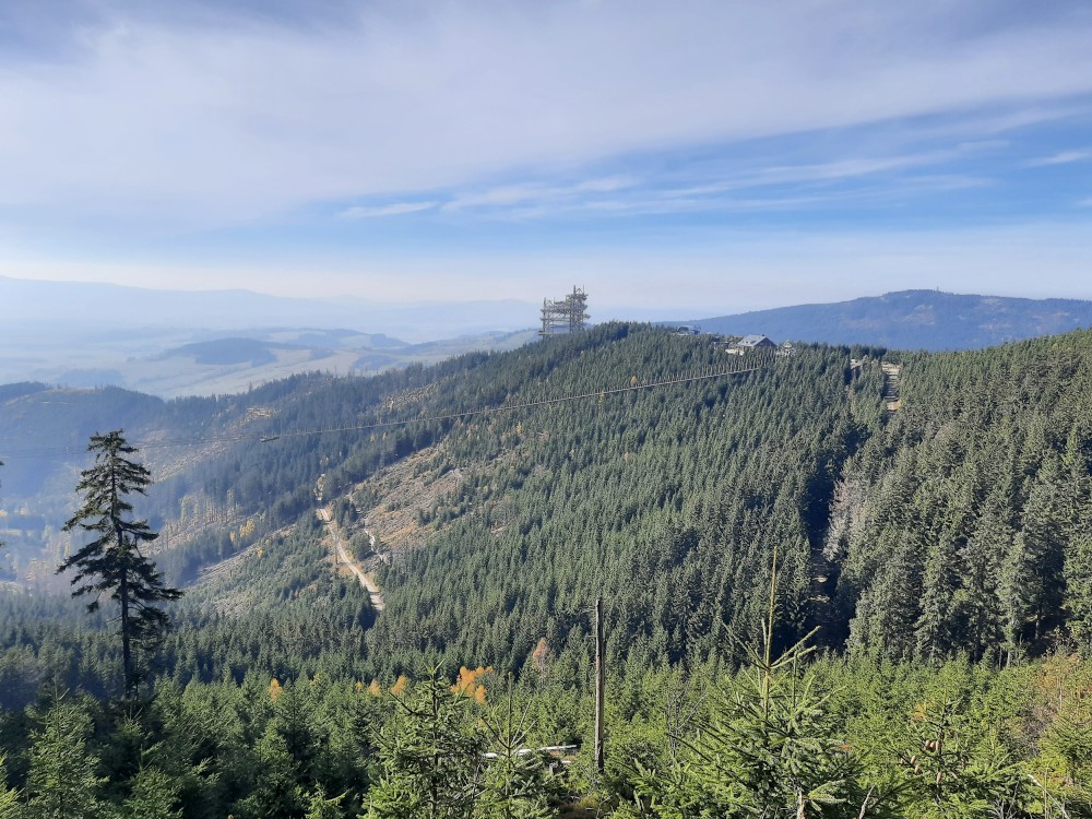 Pak už jen klesám k místnímu Disneylandu se Stezkou v oblacích. Dokončují tu lávku nataženou přes údolí. Po sjezdovkách dlouho klesám až dolů k autu a jedu domů. Bylo to výživných cca 26 km.
